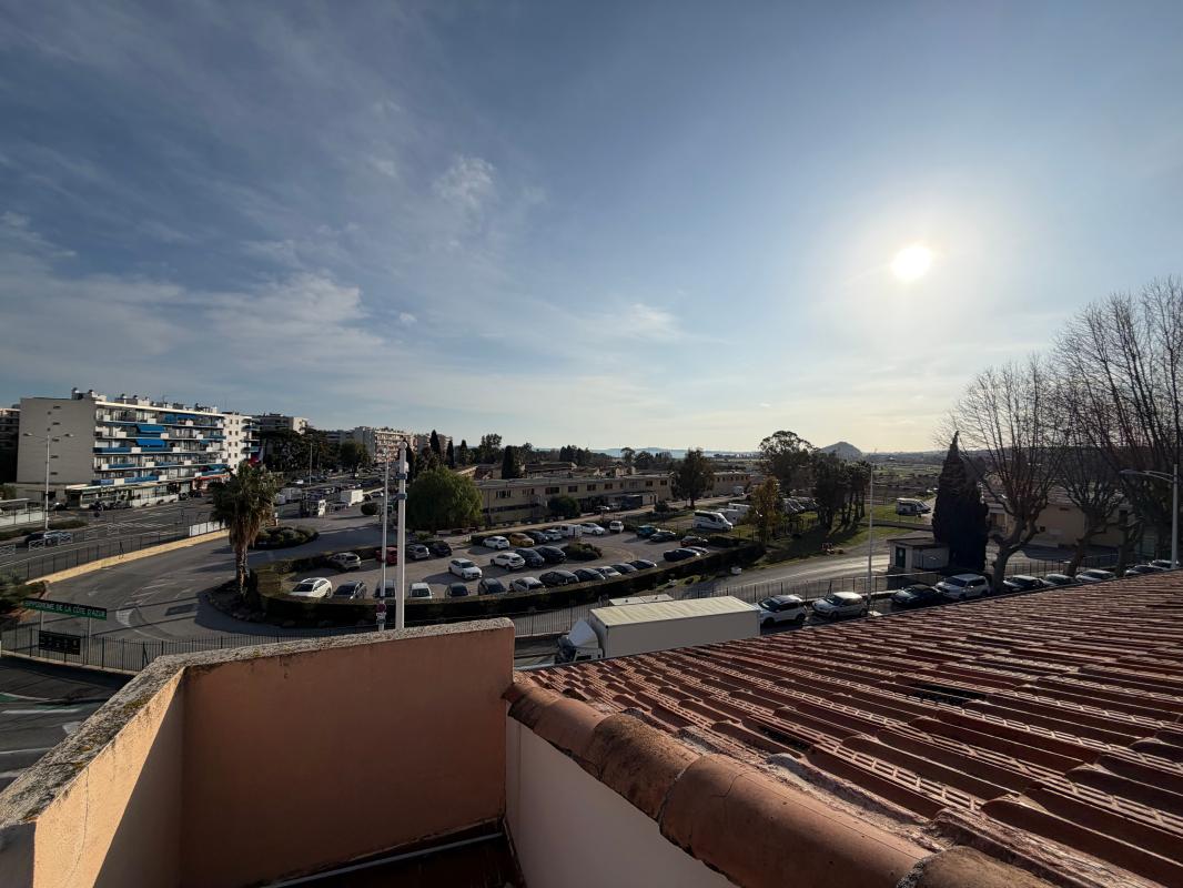 RARE : A 300 m de la mer, au 3ème et dernier étage, beau 2 pièces avec nombreux rangements, grand balcon et tropézienne (le tout de 15 m2) avec vue mer et hippodrome. 25m2 habitable loi Carrez - 59 m2 surface brute au sol -