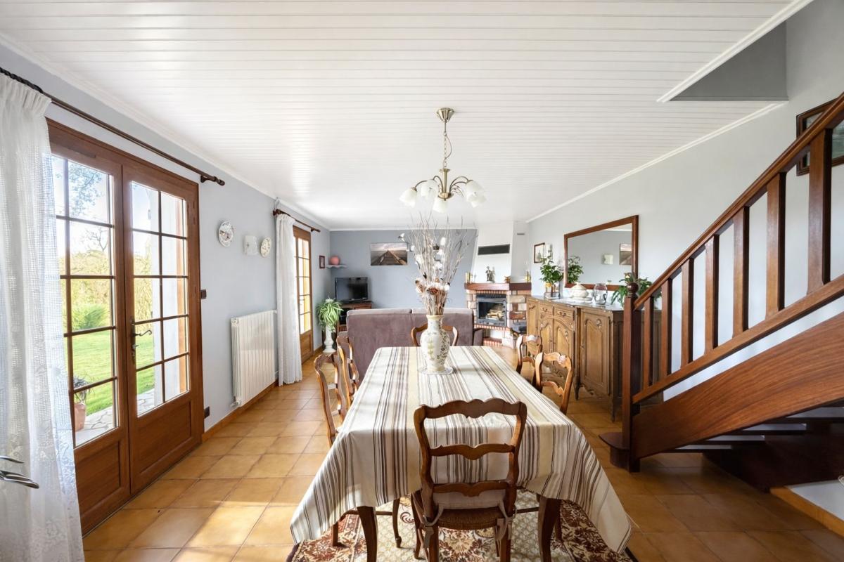 La maison s'ouvre sur une agréable pièce de vie composée d'un coin salon avec cheminée, et d'un espace salle à manger, idéal pour partager de beaux moments en famille ou entre amis, été comme hiver.