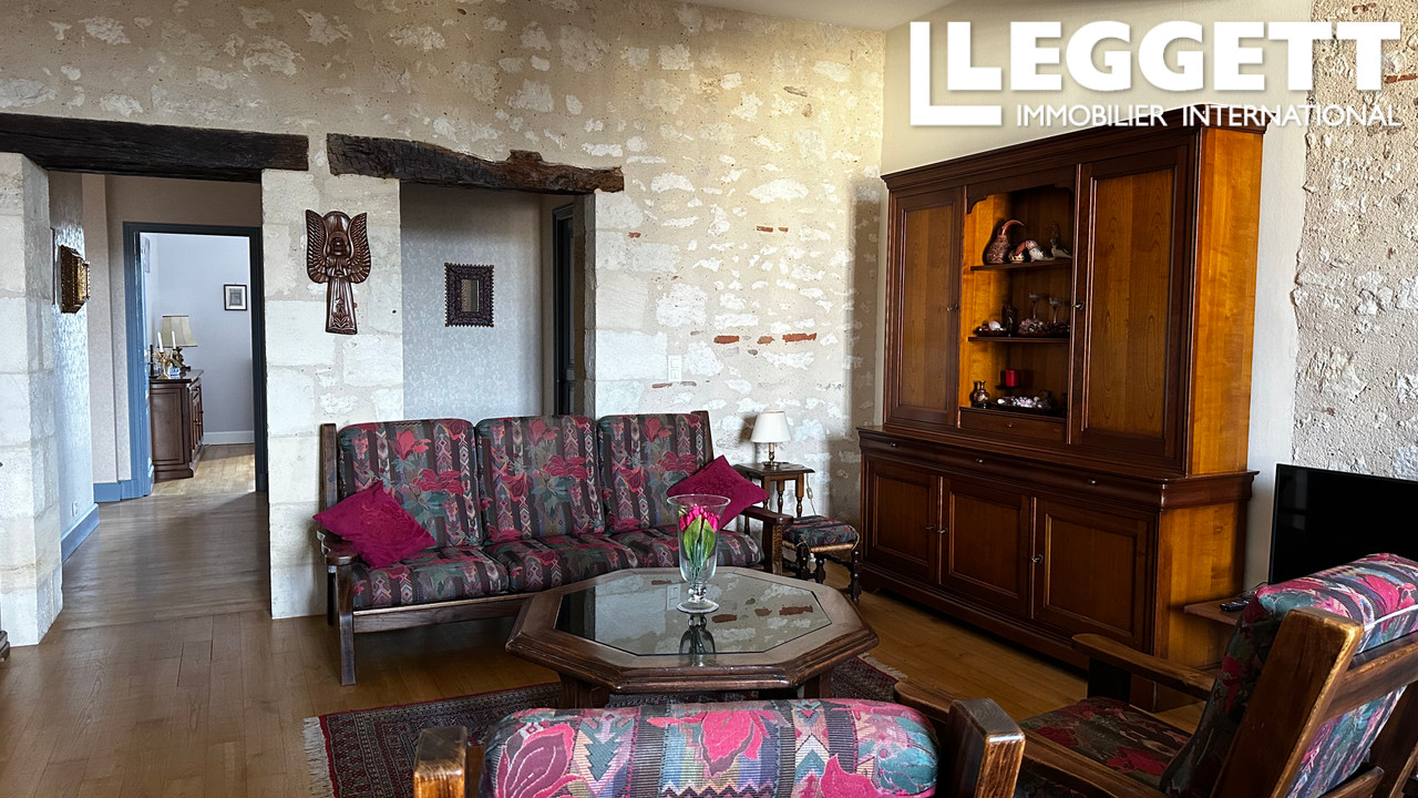 Il offre de beaux volumes et conserve des éléments d'époques tels que la cheminée en pierre, les murs en pierre apparente ou de belles hauteurs sous plafond.
