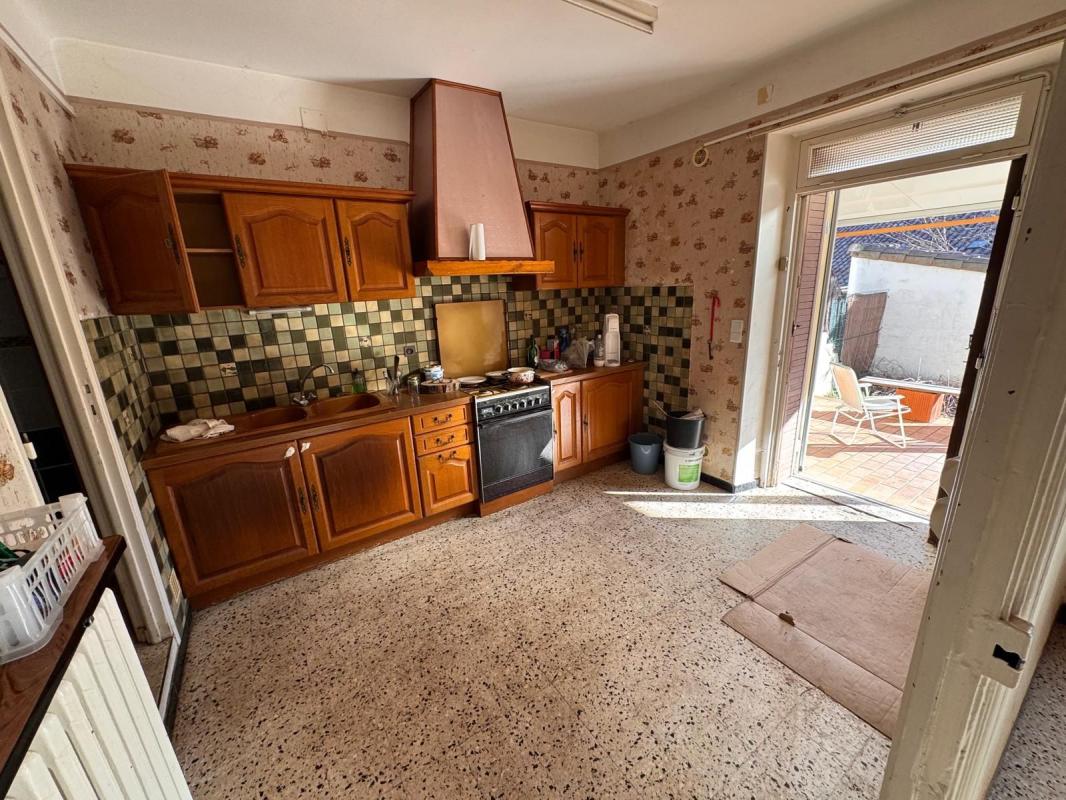 Vous découvrirez une cuisine indépendante, fonctionnelle, pouvant être entièrement repensée et modernisée selon vos envies. Celle-ci communique avec un salon lumineux, bénéficiant d'une belle exposition et d'un accès direct à l'extérieur.