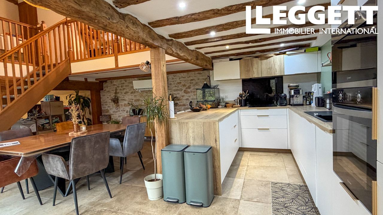 Vous avez une entrée / buanderie-salle d'eau, très pratique au quotidien (ceux qui arpentent les chemins boueux en hiver comprendront !). De là, la grande salle de vie de 63 m2 offre différents espaces ouverts, tous donnant sur le jardin : cuisine de 2023 entièrement équipée, espace salle à manger, espace salon cosy avec son poêle à bois.