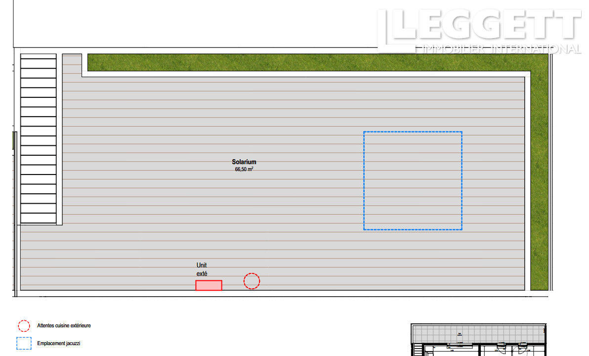 L'espace de vie se compose d'un vaste séjour avec cuisine ouverte de 43 m², prolongé par une grande terrasse de 24.5 m², véritable pièce à ciel ouvert idéale pour recevoir ou se détendre avec son solarium de 66m2.