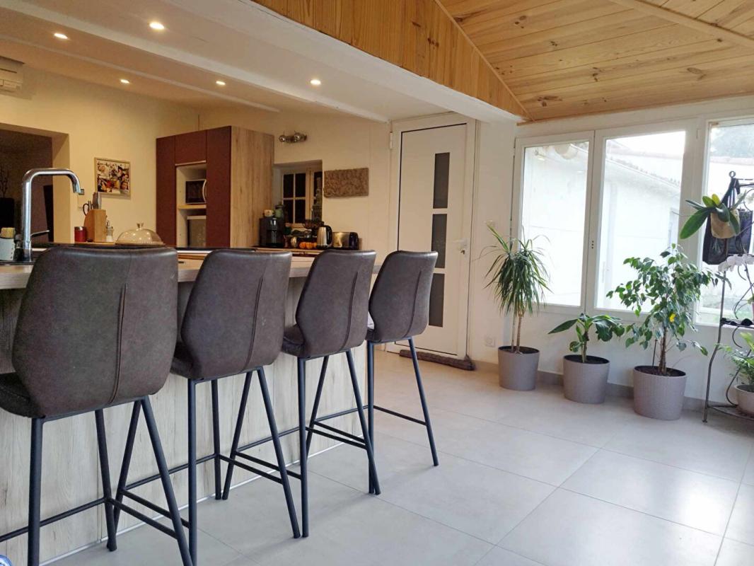 Une grande cuisine parfaitement équipée avec vue sur ce superbe jardin grâce aux nombreuses ouvertures.