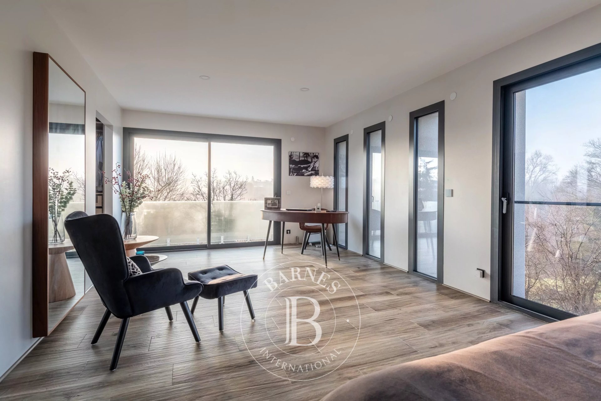 EXCLUSIVITÉ - Sainte-Foy-lès-Lyon. À seulement 5 kilomètres de la place Bellecour, cette maison contemporaine de 212 m² en excellent état s’élève sur un terrain de 982 m² avec piscine. Bénéficiant d’une exposition est-ouest et d’une vue dégagée sur la verdure, elle offre un cadre de vie lumineux et calme.