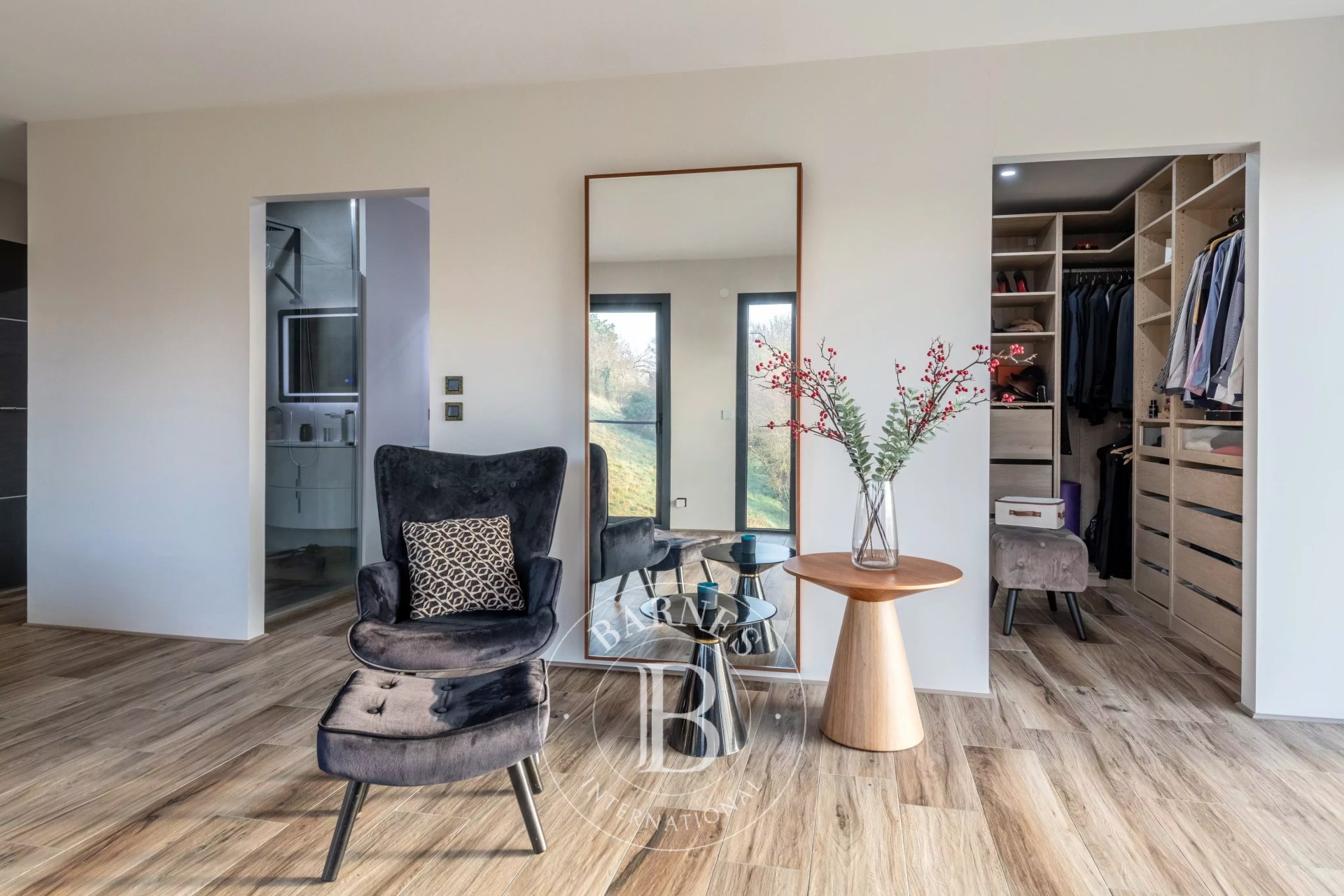 Le terrain, entièrement aménagé, accueille une piscine et un espace extérieur idéal pour recevoir. Ce bien contemporain séduit par ses volumes généreux, son agencement optimisé et son environnement préservé, tout en restant proche des commerces, écoles et transports.