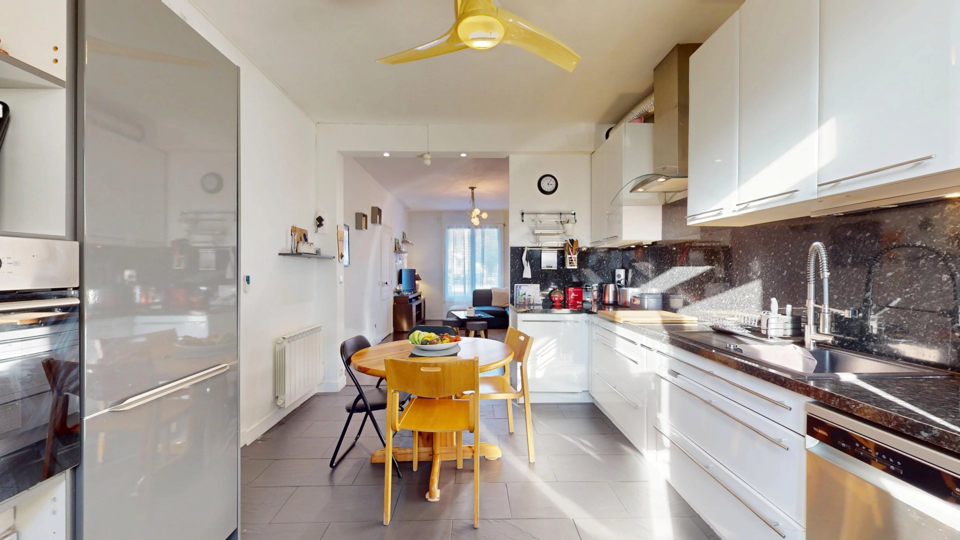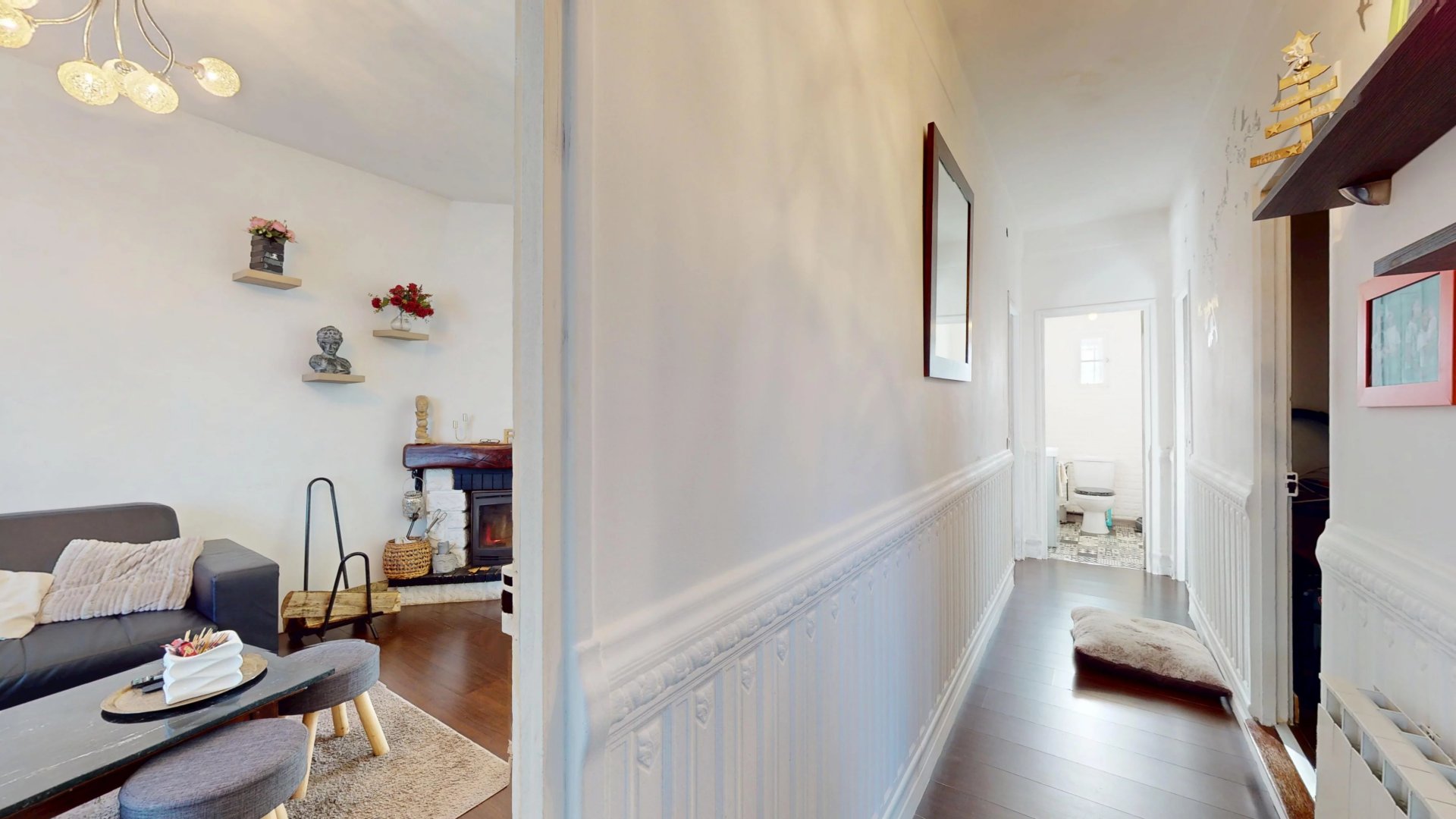 Un grand couloir central dessert un séjour chaleureux avec cheminée, une cuisine lumineuse donnant directement sur le jardin et sur une magnifique terrasse plein sud de 60 m² !