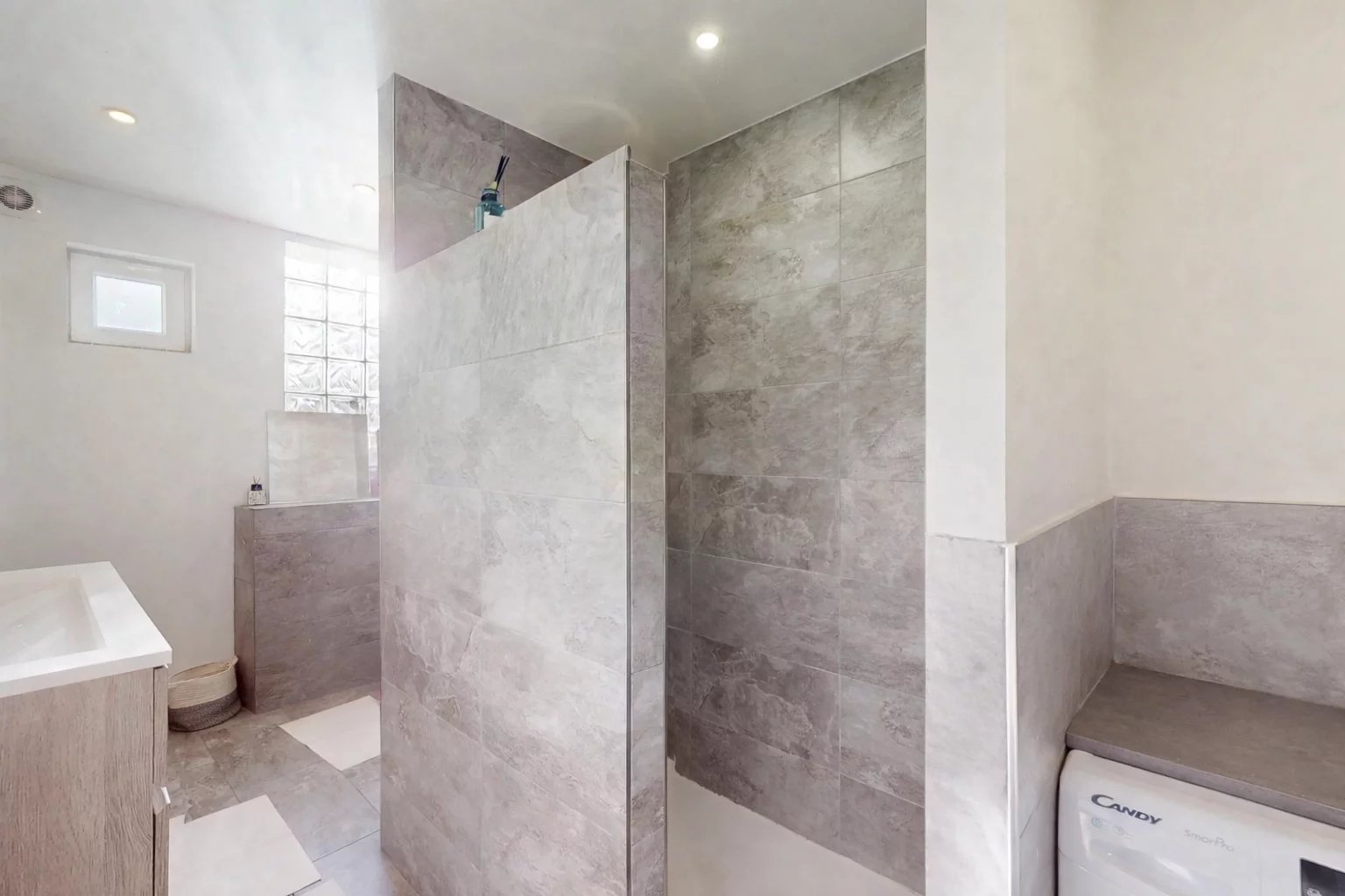 Vous trouverez également deux grandes chambres,l'une avec son propre dressing, ainsi qu’une salle de douche récente et moderne avec coin buanderie, menant directement au garage.
