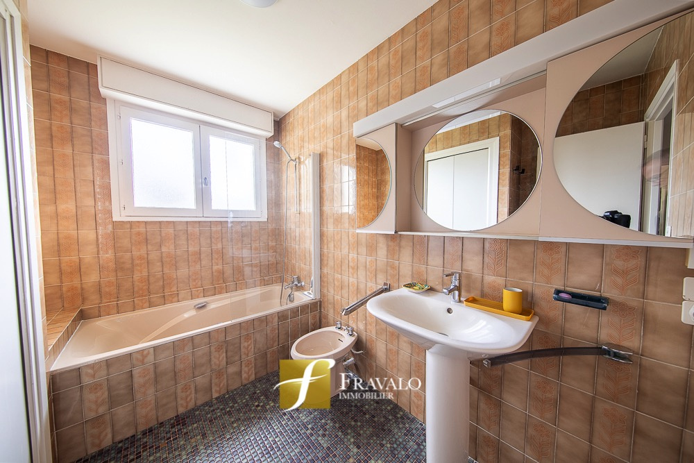 Baden, entourée d'un beau terrain boisé de 2000 m2 situé au bord de l'eau, cette maison traditionnelle comprend au rez-de-chaussée: une entrée, un séjour avec cheminée ouvert sur la terrasse et prolongée d'une vue sur l'eau, une cuisine indépendante, une chambre, une salle de bains, un wc et un garage. L'étage dessert trois chambres, une salle d'eau, un wc et un grenier. Environnement verdoyant et beau potentiel. Estimation des coûts annuels d'énergie pour un usage standard du logement: entre 2880 EUR et 3950 EUR (abonnement compris). Les informations sur les risques auxquels ce bien est exposé sont disponibles sur le site Géorisques : georisques.gouv.fr