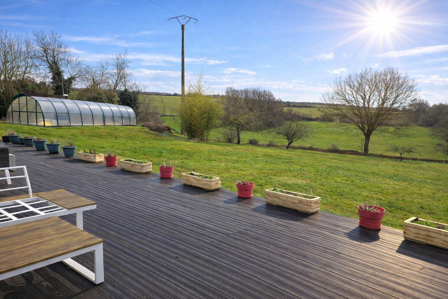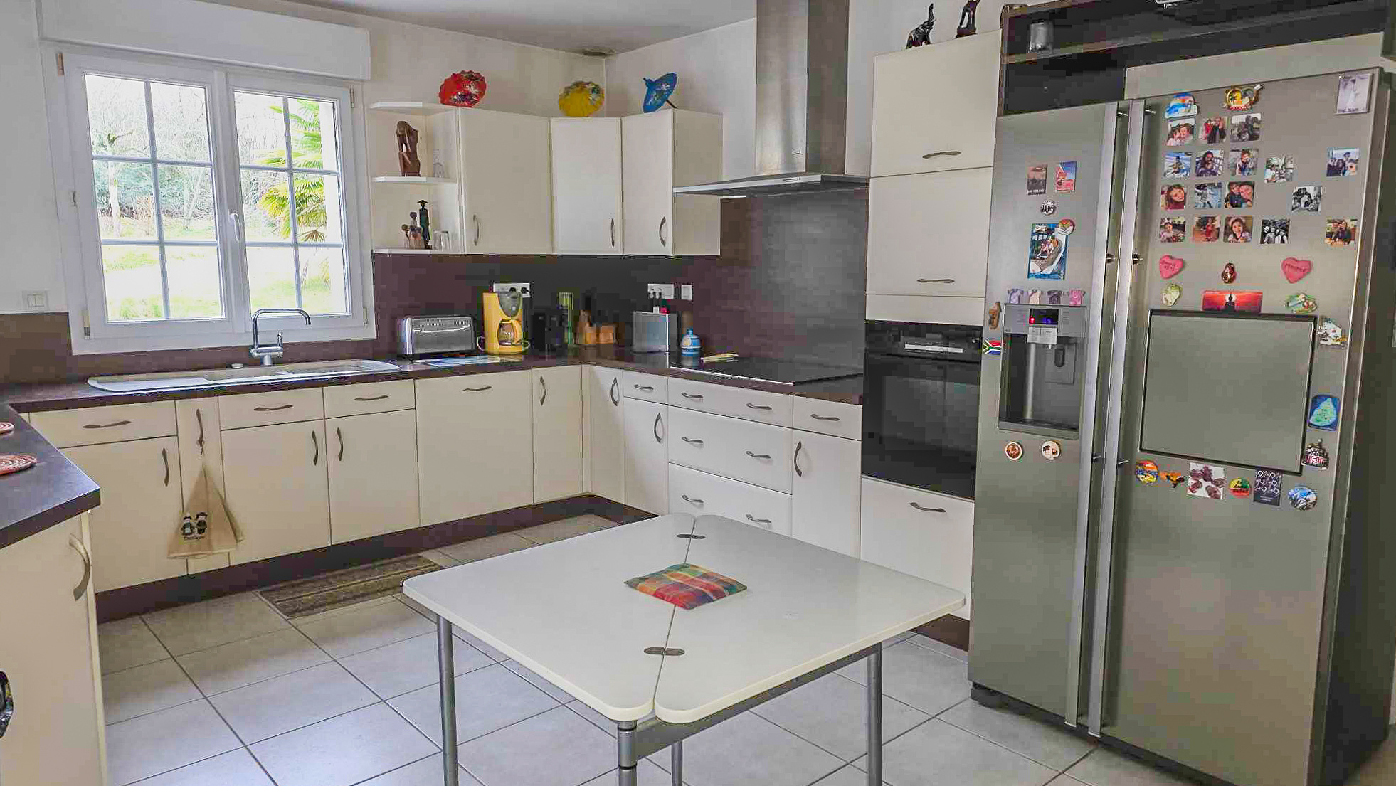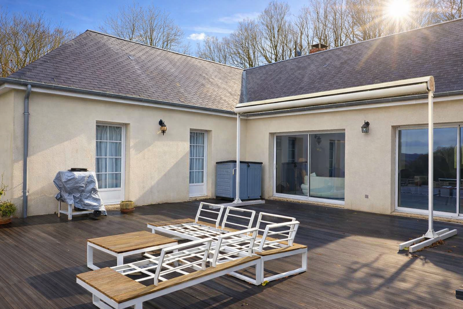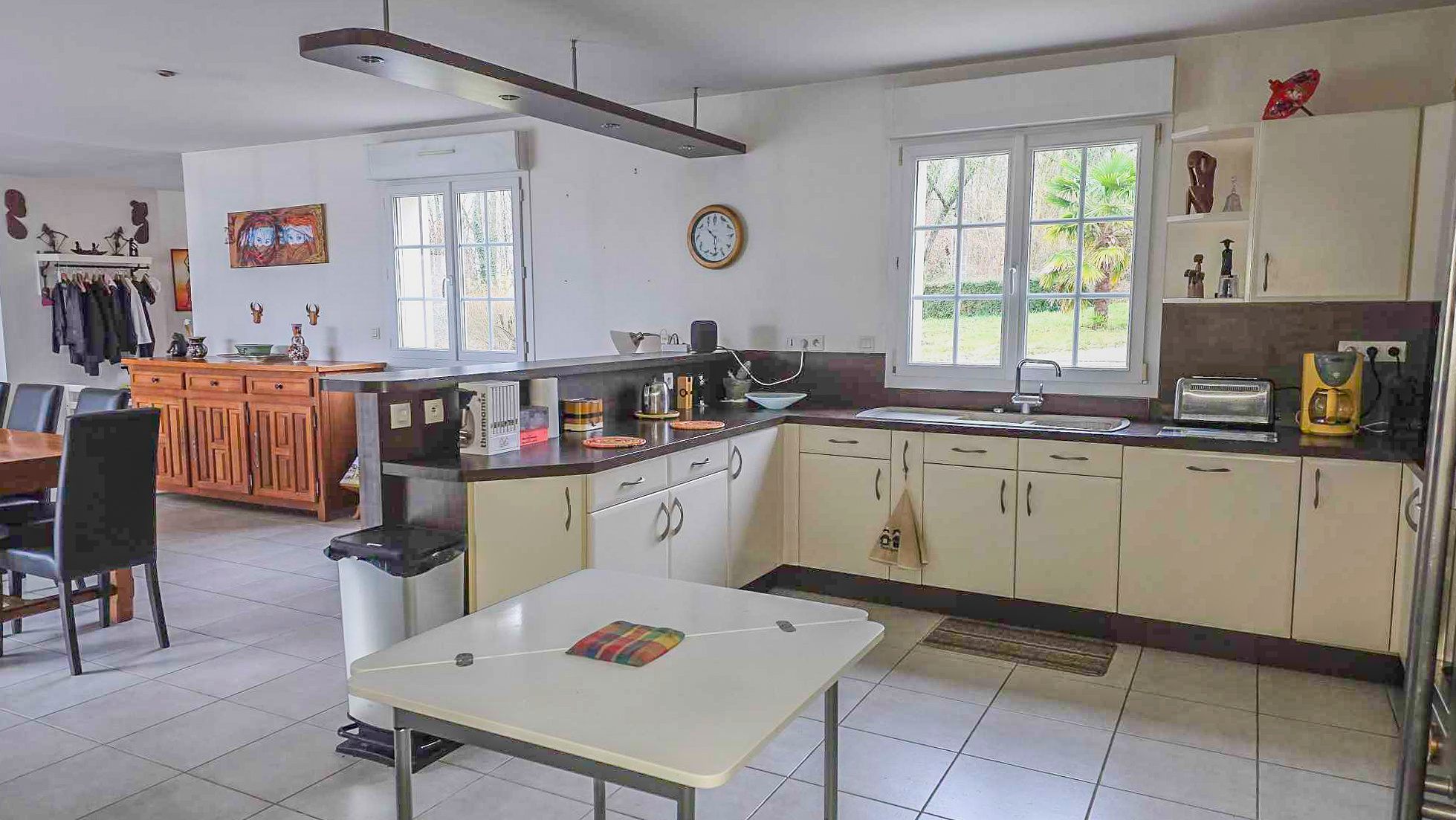 1/ Pavillon artisanal de plain-pied (2006), plus de 180m2 habitables, nombreuses prestations : Cuisine aménagée et équipée ouverte sur le salon-séjour très lumineux, 4 chambres, l'ensemble avec un accès direct à la terrasse et vue imprenable sur la campagne. Deux salles de bains. Un bureau. Une buanderie. Chauffage au sol par géothermie, alliant confort et performance énergétique.