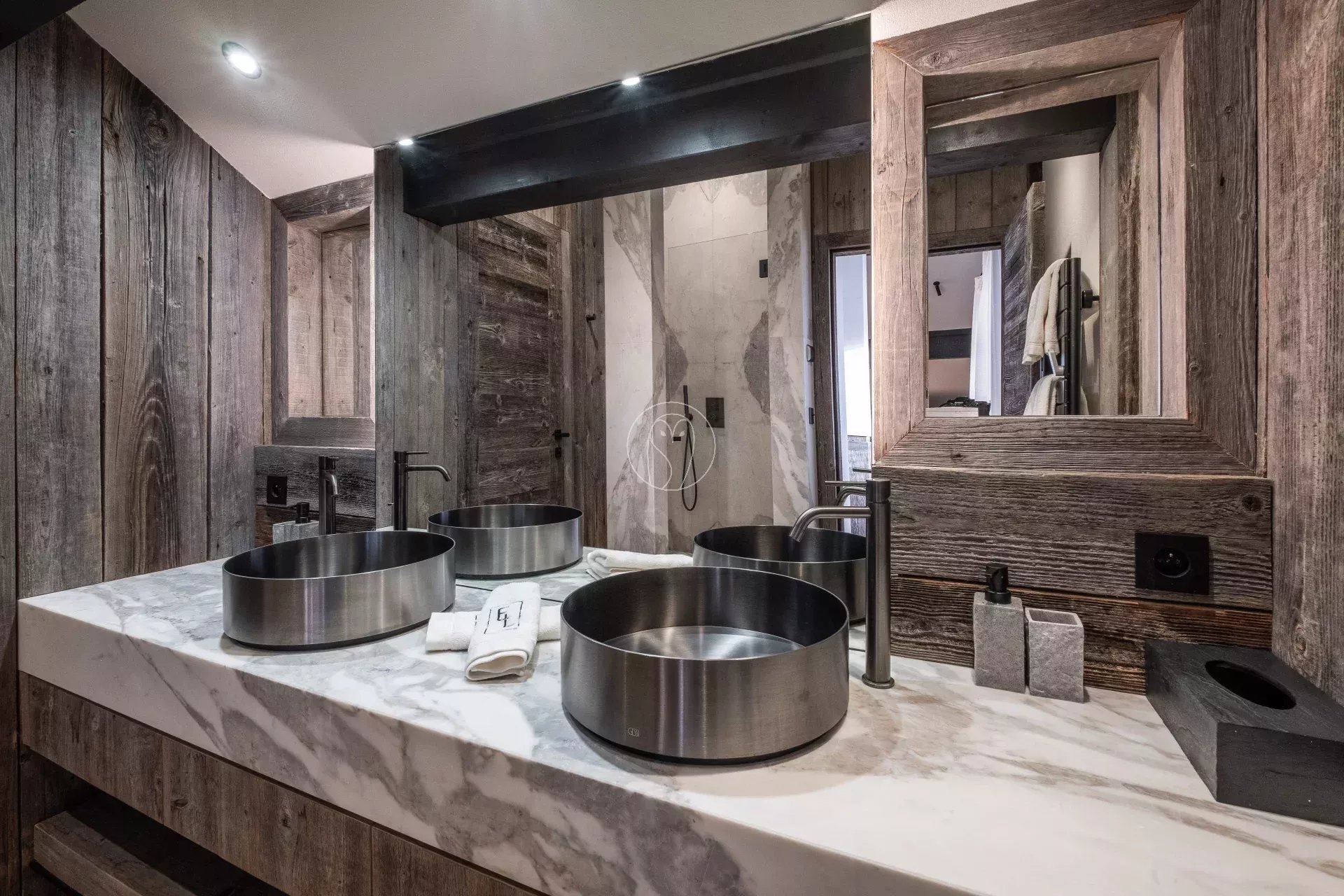 Réparti sur quatre niveaux, le chalet offre une circulation fluide et confortable grâce à un ascenseur desservant l’ensemble des étages.