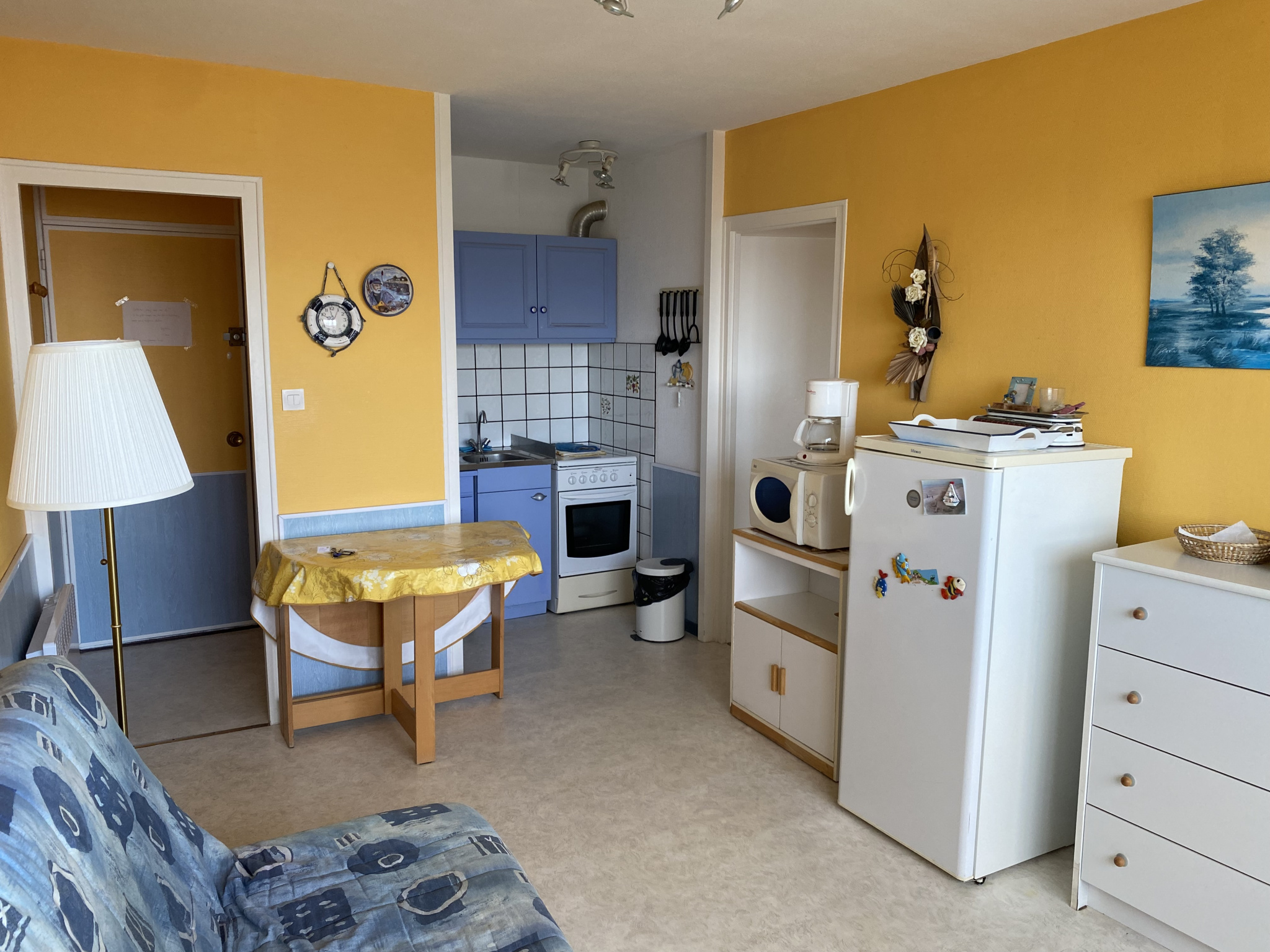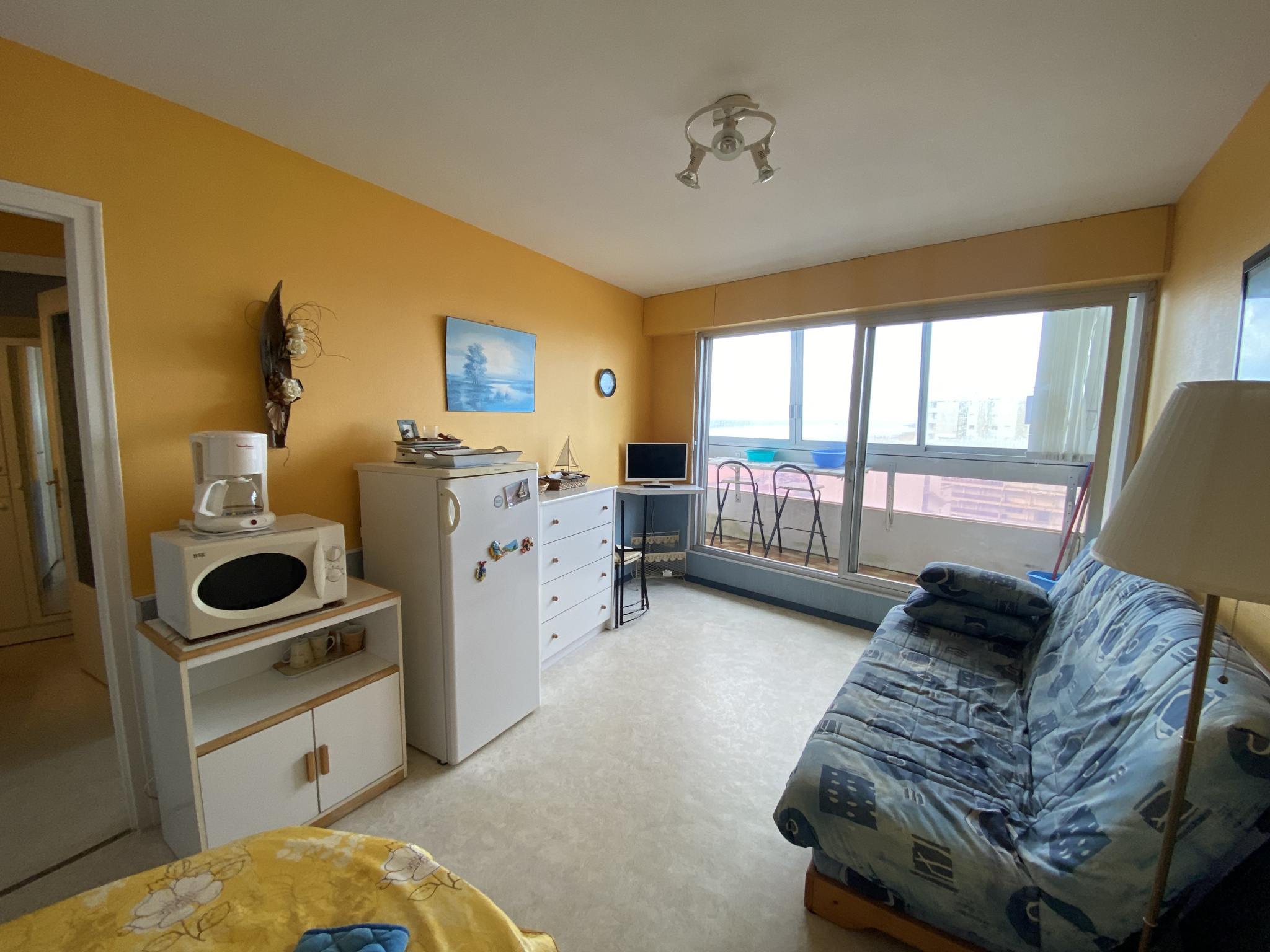 Appartement de type 2 situé au 7ème étage d'une résidence sécurisée, comprenant entrée sur salon séjour, kitchenette, salle de bains, wc séparé, 1 chambre.
