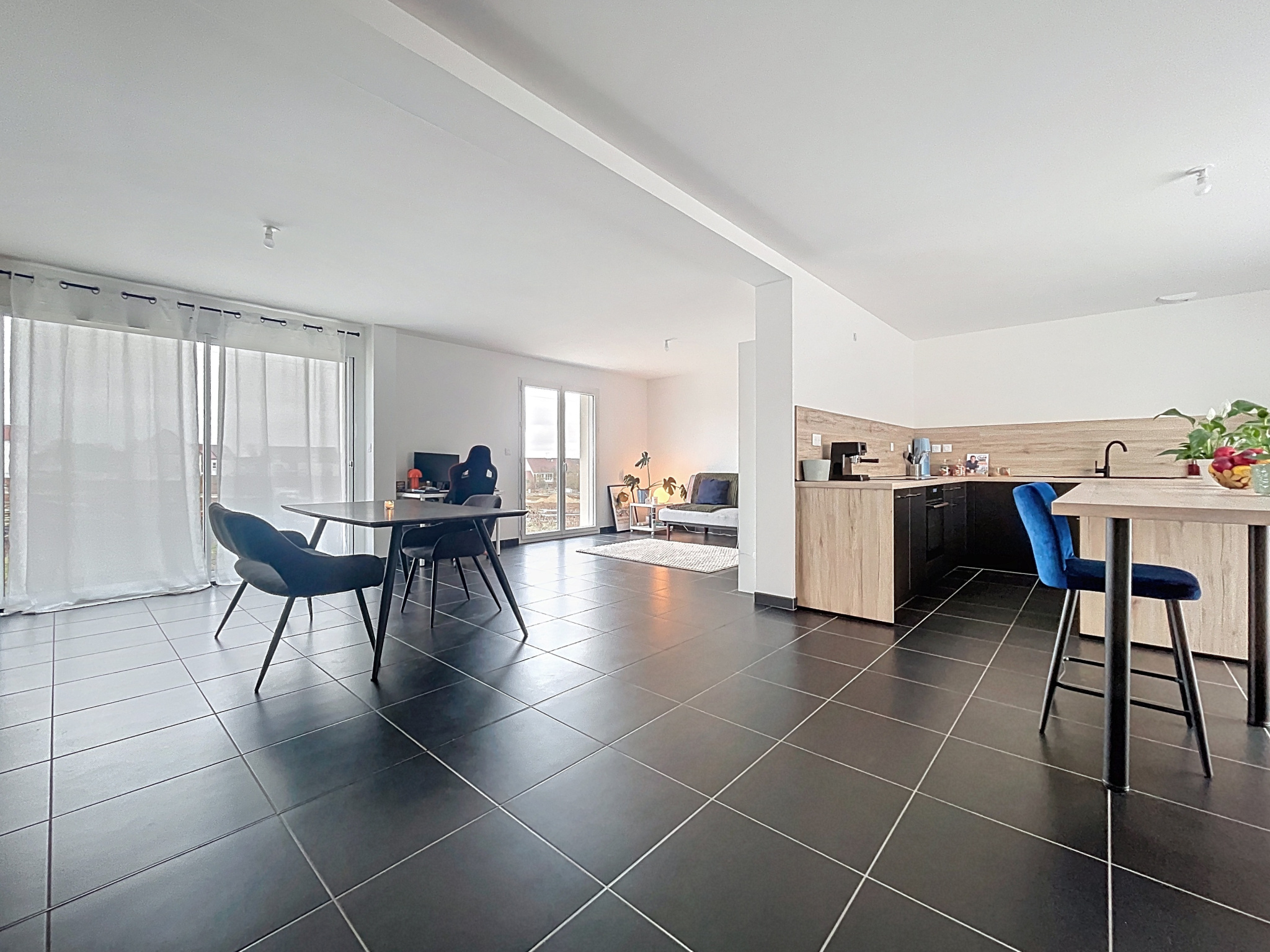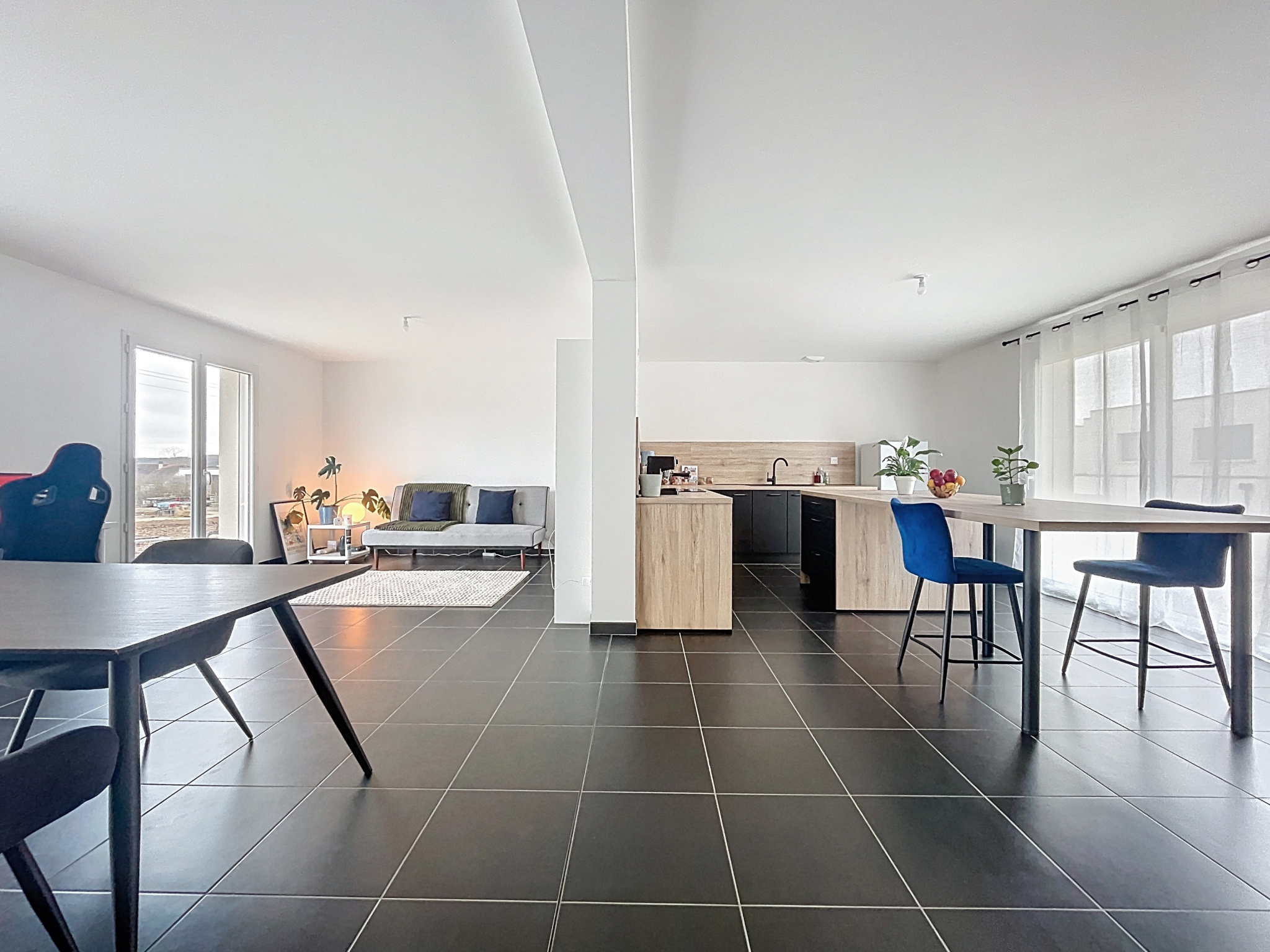 Maison neuve livrée en septembre 2025, de 116 m2 habitables (135 m2 au total avec garage et cellier), édifiée sur un terrain clos de 337 m2.