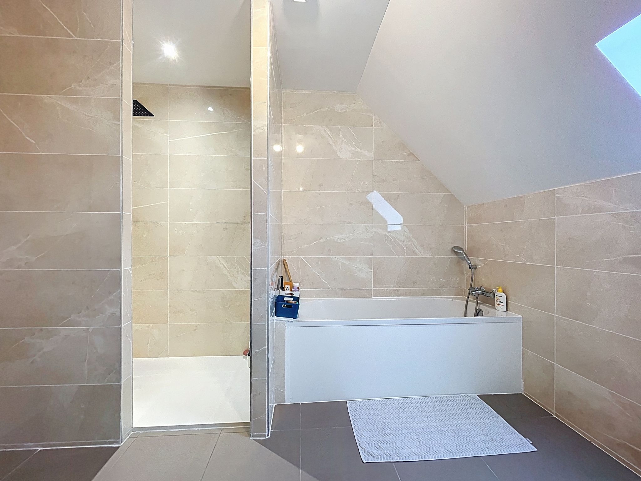 A l'étage, un dégagement dessert 3 chambres, ainsi qu'une salle d'eau comprenant une douche italienne, une baignoire et un WC.