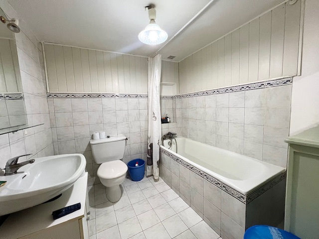 A l'étage : dégagement desservant 2 chambres, salle de bains avec WC.