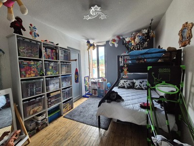D'une superficie de 95,70 m², le logement est actuellement loué 570 € hors charges. Il se compose d'une vaste pièce de vie regroupant salon-séjour et cuisine aménagée, de trois chambres, de deux salles d'eau, ainsi que de WC indépendant.