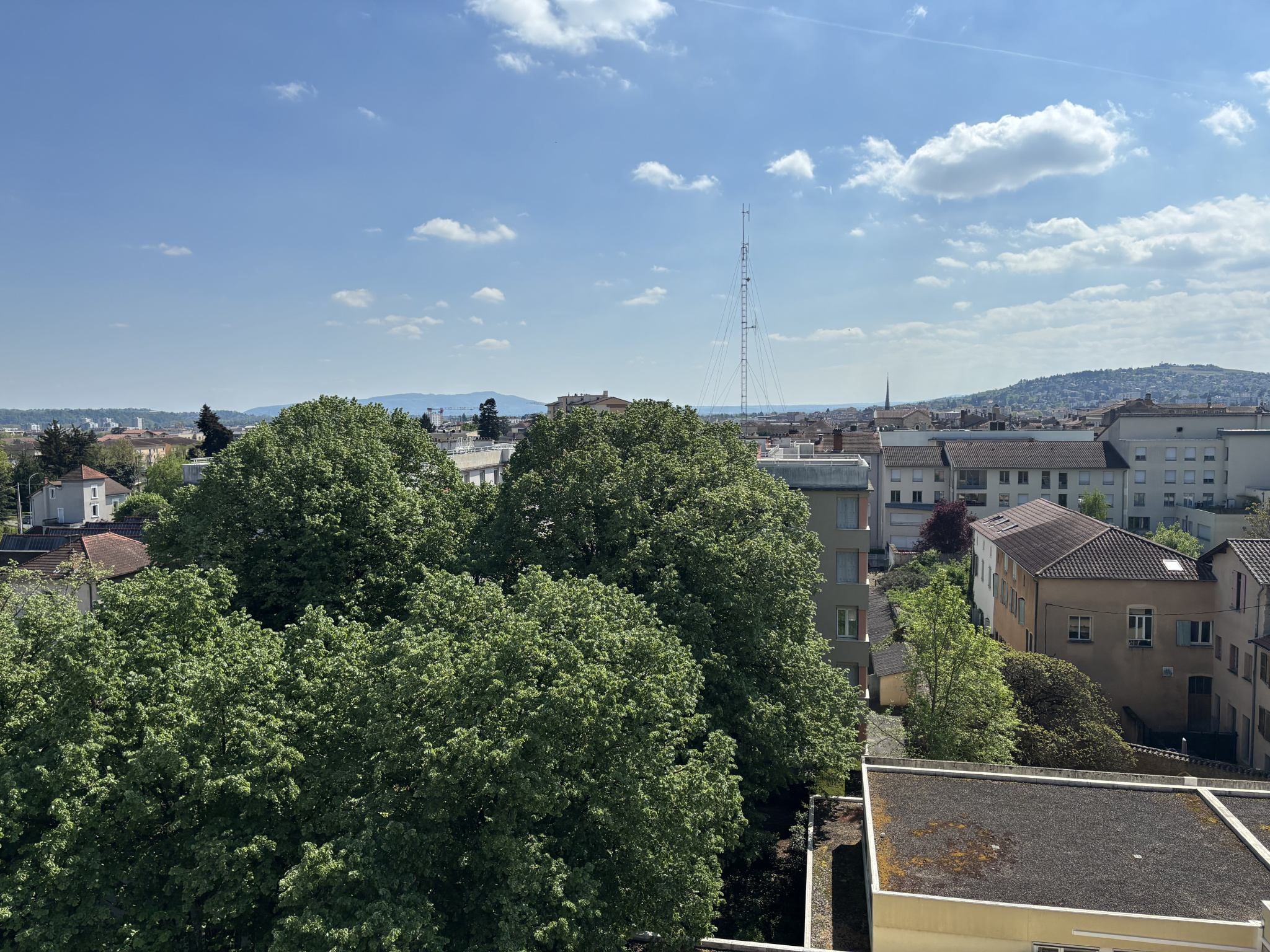 Situé au 7 èm étage d'une résidence avec ascenseur, il bénéficie d'une belle vue dégagée, offrant une agréable sensation d'espace et de calme, tout en étant à proximité immédiate du centre-ville.