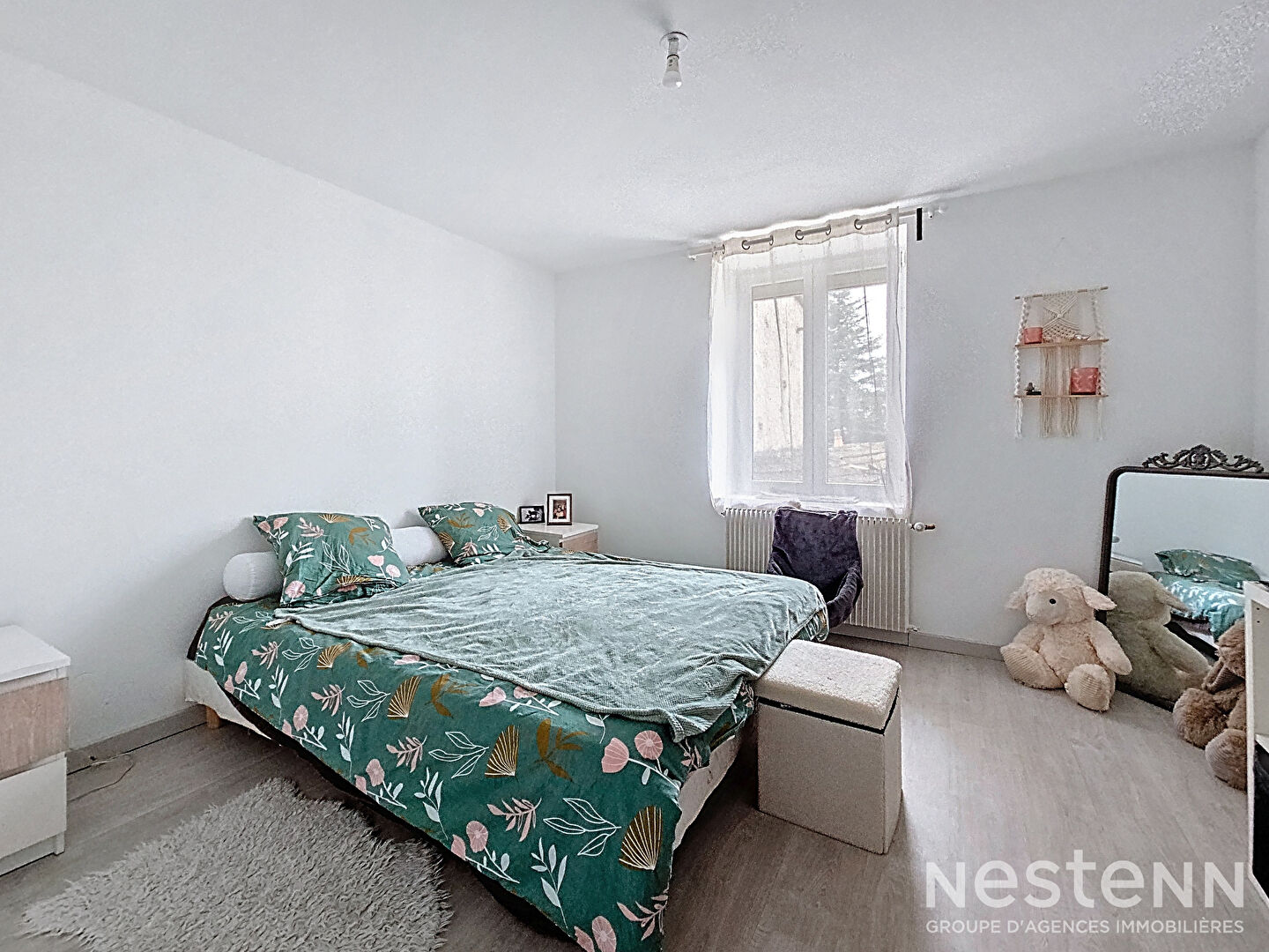 À l'étage, l'espace nuit propose trois grandes chambres, un bureau, une spacieuse salle de bain avec WC et une buanderie fonctionnelle. Une quatrième chambre peut être créée facilement selon les besoins, avec peu de travaux.