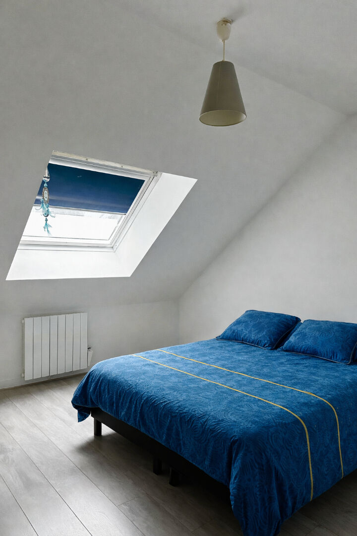 À l'étage, vous trouverez deux chambres et une salle de bain avec WC et meuble vasque.