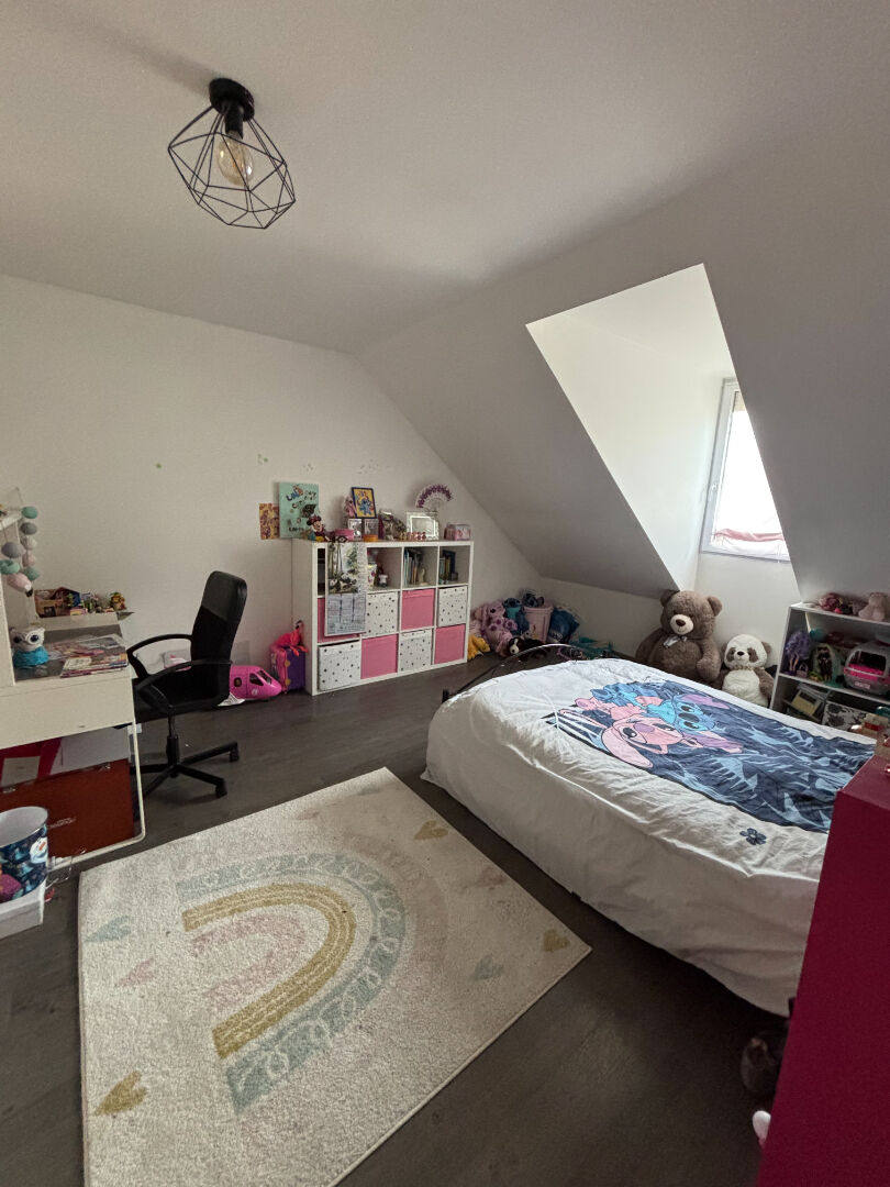 Le deuxième étage complète ce bien avec un palier aménagé en bureau et une chambre avec placards, pouvant servir de chambre d'amis ou d'espace indépendant.