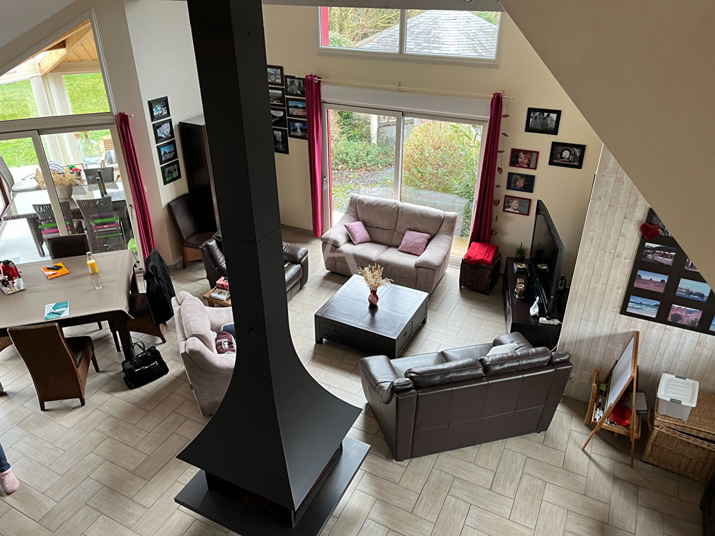 Le salon séjour, s'articule autour d'une cheminée centrale. La cuisine aménagée et équipée, prolongée par une arrière-cuisine, offre un cadre fonctionnel et moderne.