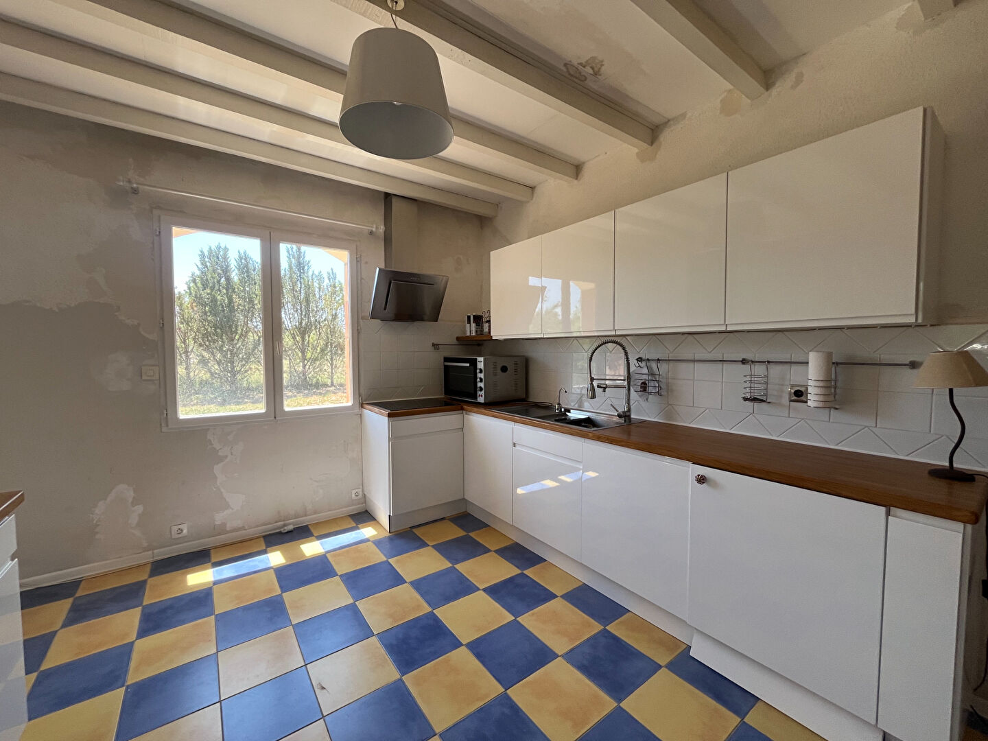 Nichée dans un écrin de verdure, implantée sur 4 faces, cette coquette maison de plain-pied vous séduira par son atmosphère paisible et chaleureuse.Dès l'entrée, vous découvrirez un lumineux séjour avec cuisine ouverte; le tout sublimé par un splendide poêle "Castellamonte", idéal pour réchauffer vos soirées d'hiver. Une mezzanine vient compléter l'espace de vie.Une salle de bain et une salle d'eau, wc séparé, buanderie, garage. Carrelage et plancher bois. Le terrain arboré vous promet calme et intimité. Travaux de finitions en cours à terminer et d'autres sont à prévoir. Habitation alimentée en eau par forage.