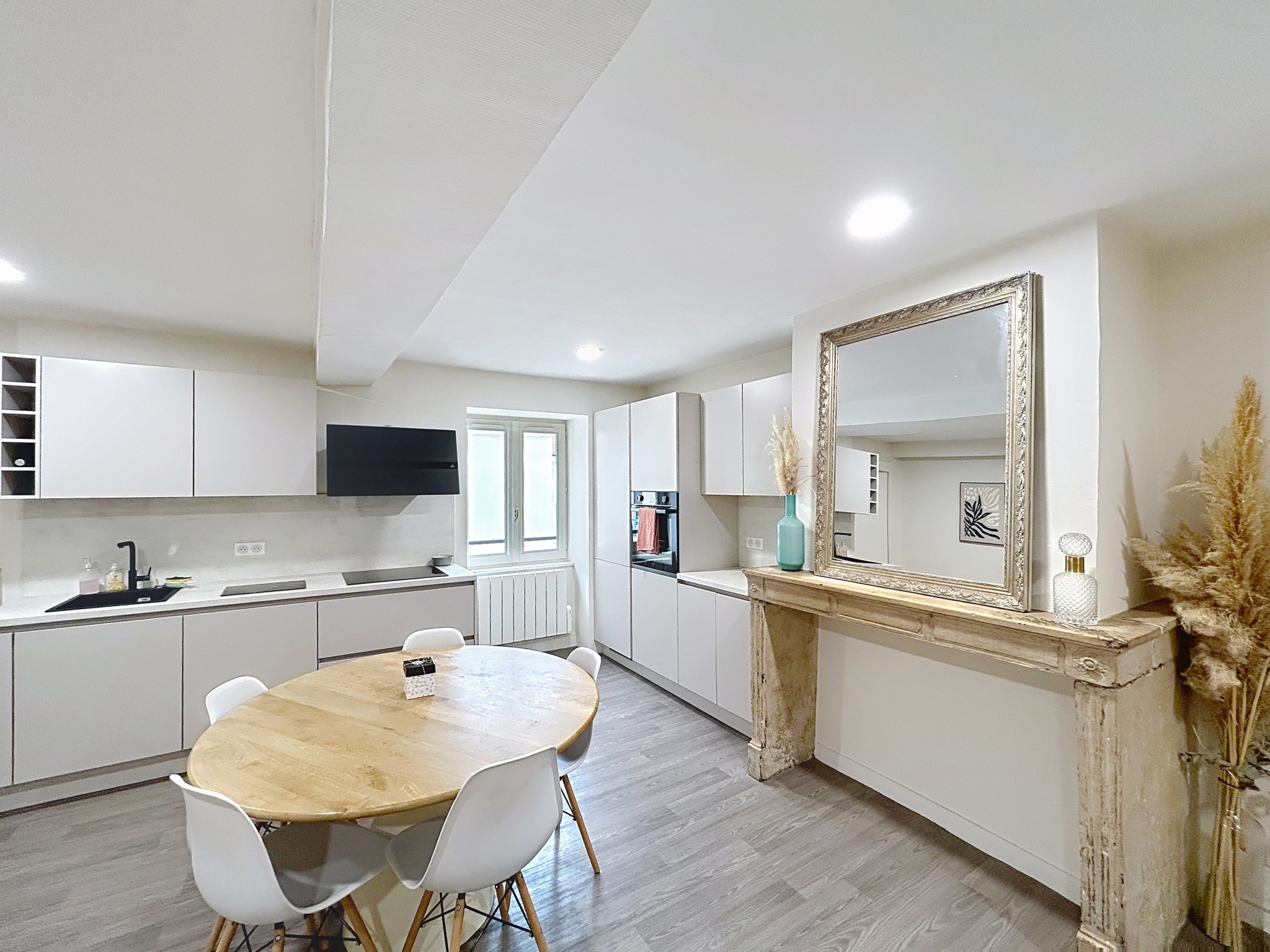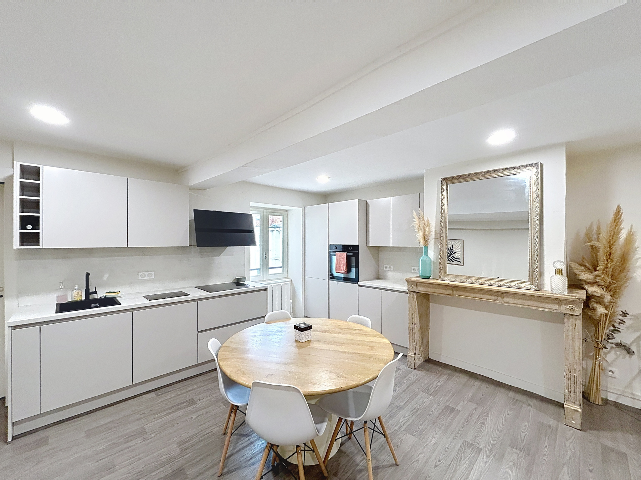 L'espace de vie s'articule autour d'un séjour avec cuisine ouverte, aux lignes contemporaines, parfaitement intégré et propice aux moments de convivialité. La distribution est fluide, les volumes sont bien proportionnés, chaque mètre carré est exploité avec intelligence.