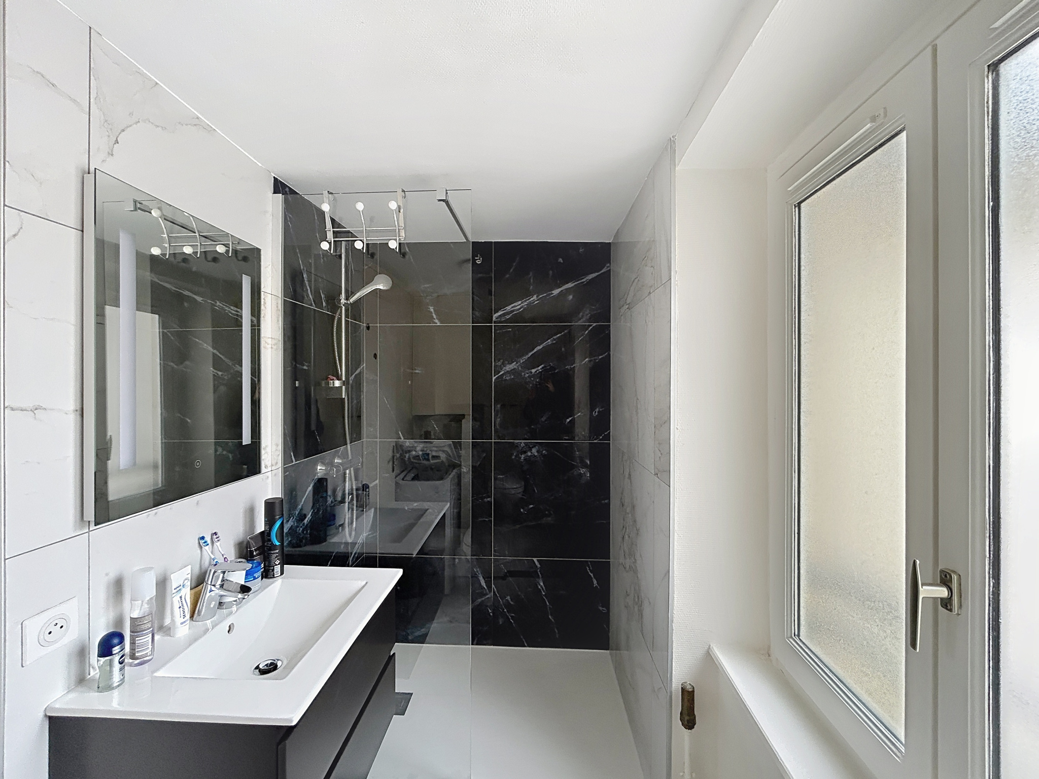 La partie nuit accueille une chambre au calme, à l'écart de l'espace de réception, ainsi qu'une salle de douche moderne, élégamment rénovée avec des matériaux actuels.