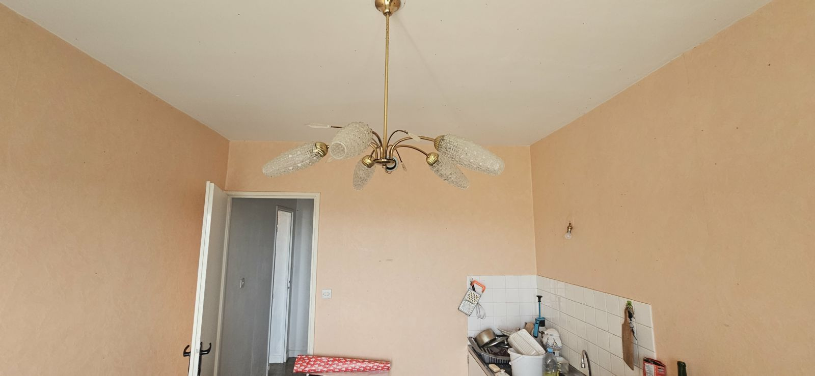 Il se compose d'une entrée avec placard, pièce de vie avec balcon, cuisine non équipée avec un grand balcon, une salle de bains, wc, placard, une cave.