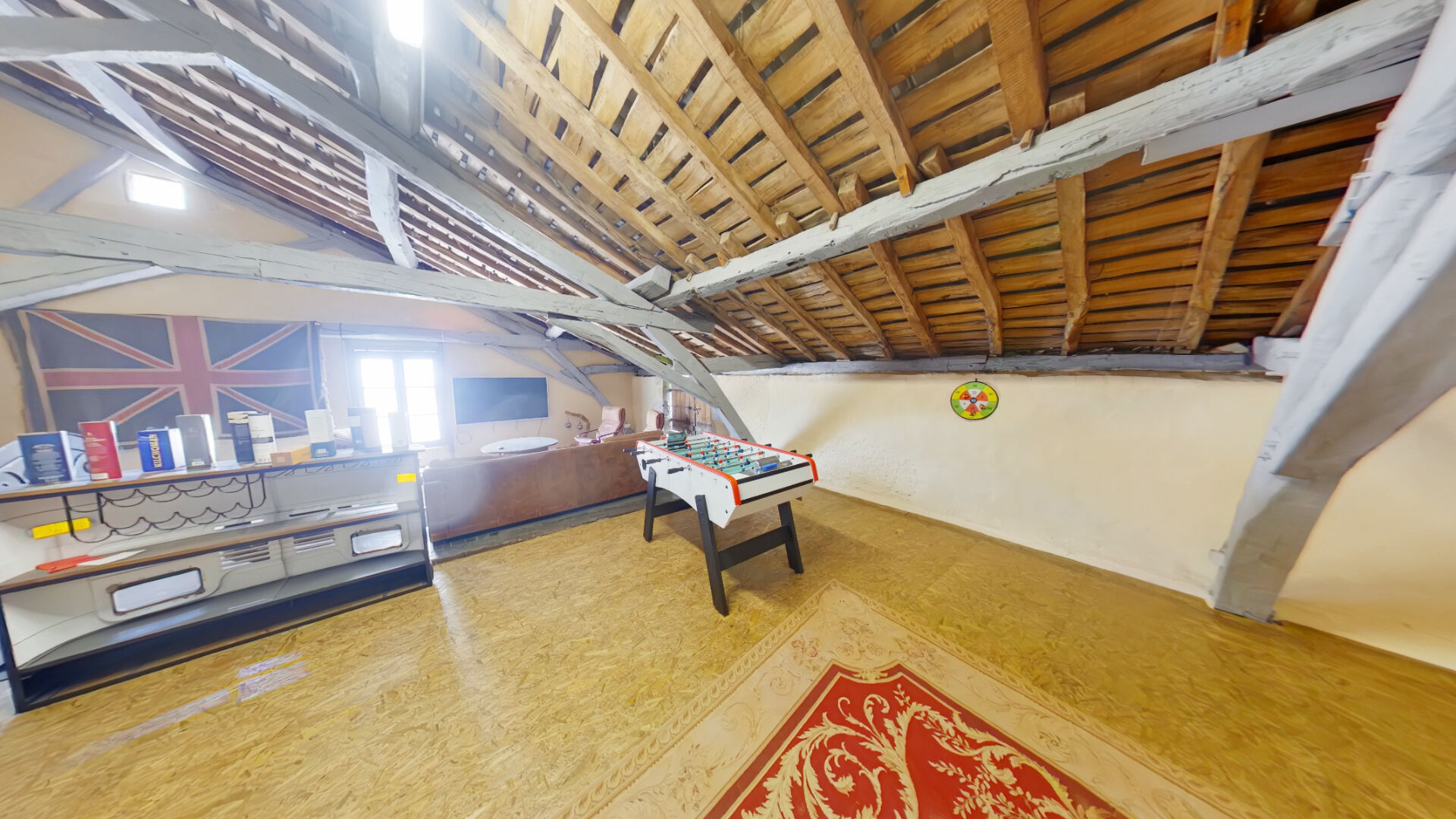 Entièrement rénové, il se compose au rez-de-chaussée d'une salle de réception offrant de beaux volumes. Les premier et deuxième étages accueillent chacun un appartement indépendant. L'immeuble dispose également d'une cour, d'une grange ainsi que d'une salle de jeux aménagée à l'étage de celle-ci.