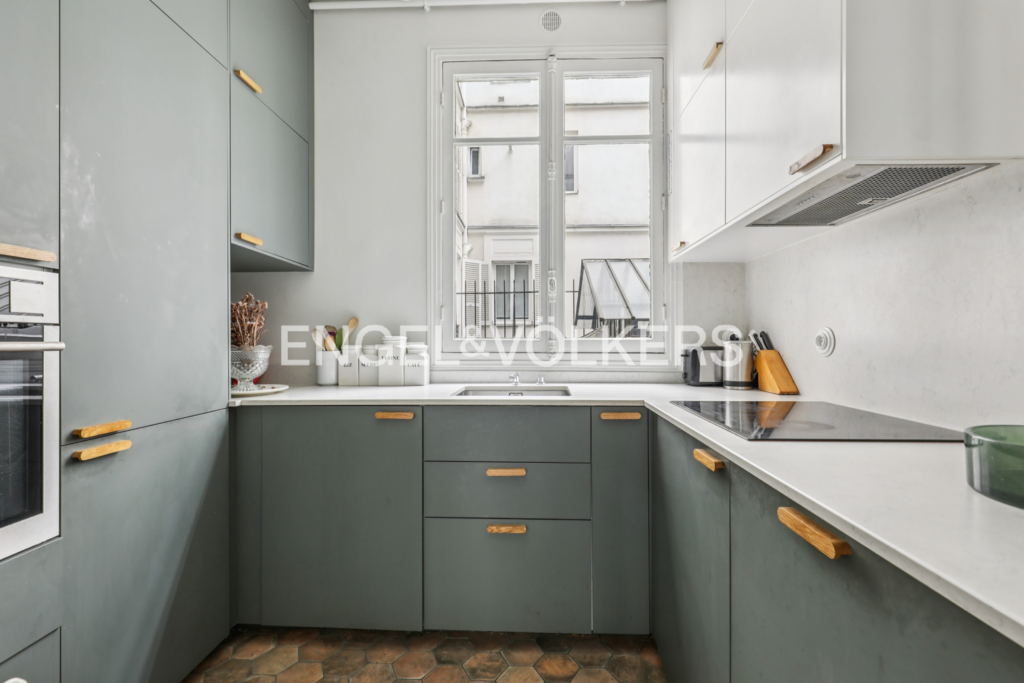 Bénéficiant d'une belle hauteur sous plafond de 2,80 m et du charme intemporel du Marais ancien, l'appartement s'ouvre sur une entrée menant à un spacieux séjour de 28 m², baigné de lumière à l'Ouest grâce à ses larges fenêtres donnant sur rue. Attenante, une cuisine contemporaine toute équipée, alliant fonctionnalité et élégance.