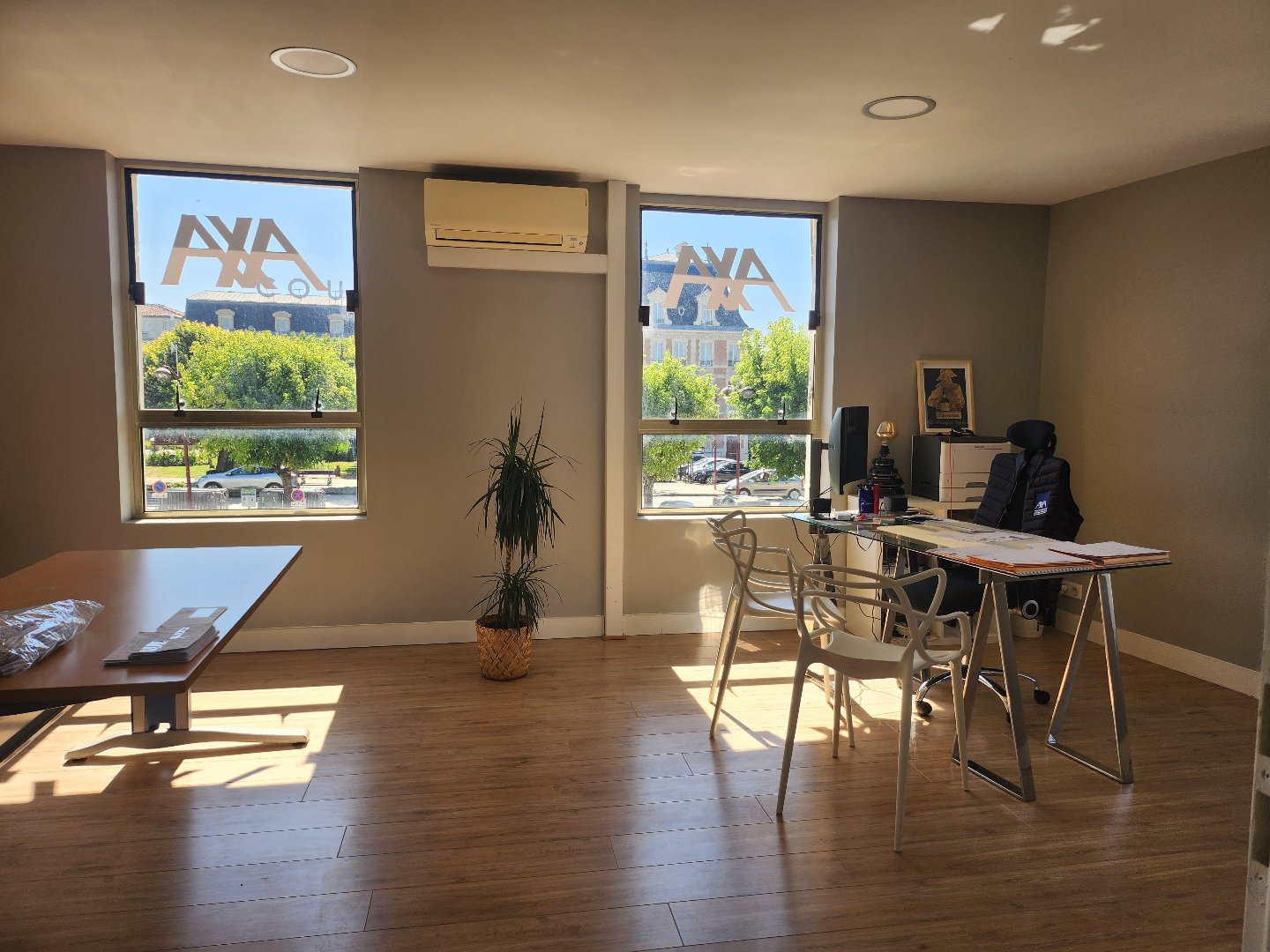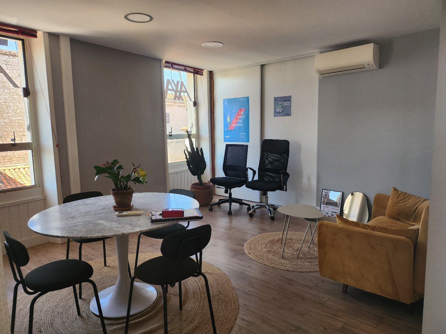 Un local commercial d'env. 100m² : accueil et bureau en rdc, à l'étage, deux bureaux, cuisine, au second grenier archives. chauffage PAC reversible .Classement énergetique C/A (116/3)