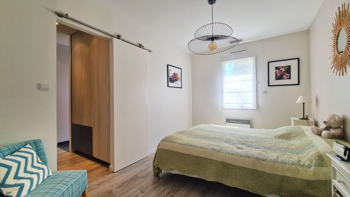 La maison propose quatre chambres, dont une suite parentale avec dressing et salle d'eau privative., une seconde salle de bains. Un bel espace vient compléter l'ensemble, fermé sur deux côtés par de larges baies vitrées, bénéficiant d'une belle hauteur sous plafond et d'une mezzanine, créant un espace supplémentaire idéal pour un bureau, un coin lecture ou une salle de jeux., actuellement utilisé en salon télé.