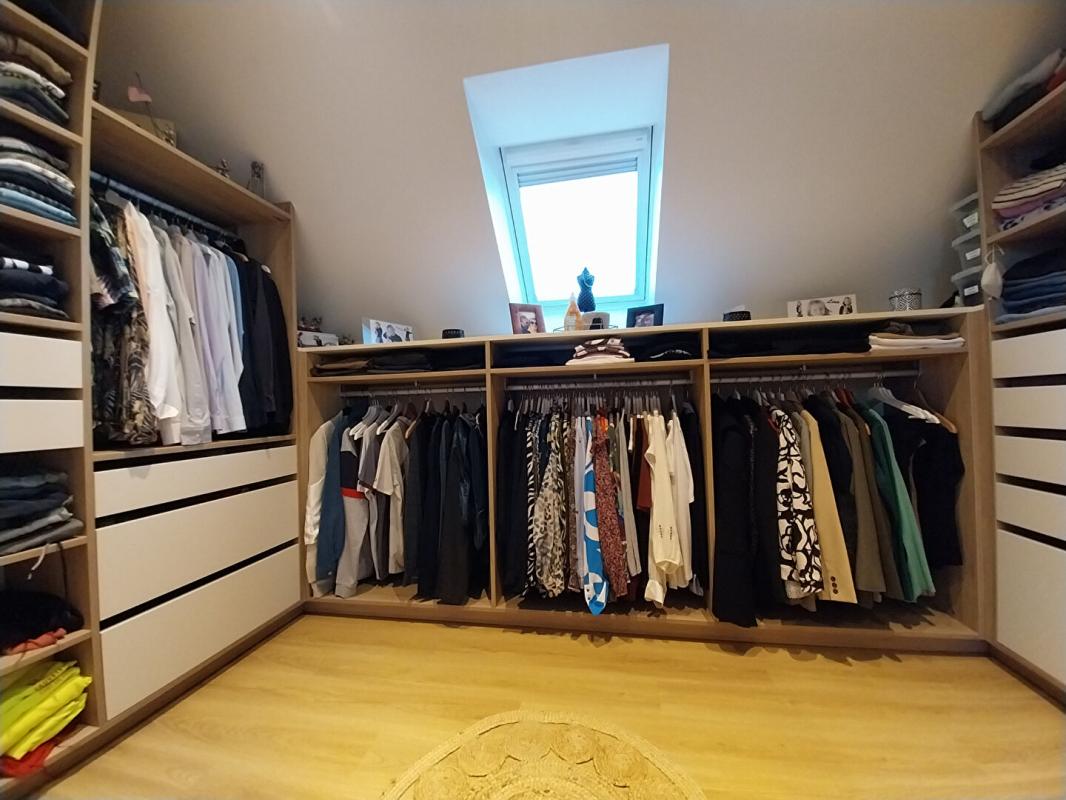 Une belle pièce palière dessert une grande chambre parentale avec son dressing privatif, une salle de douche avec WC ainsi que deux autres chambres partiellement mansardées.