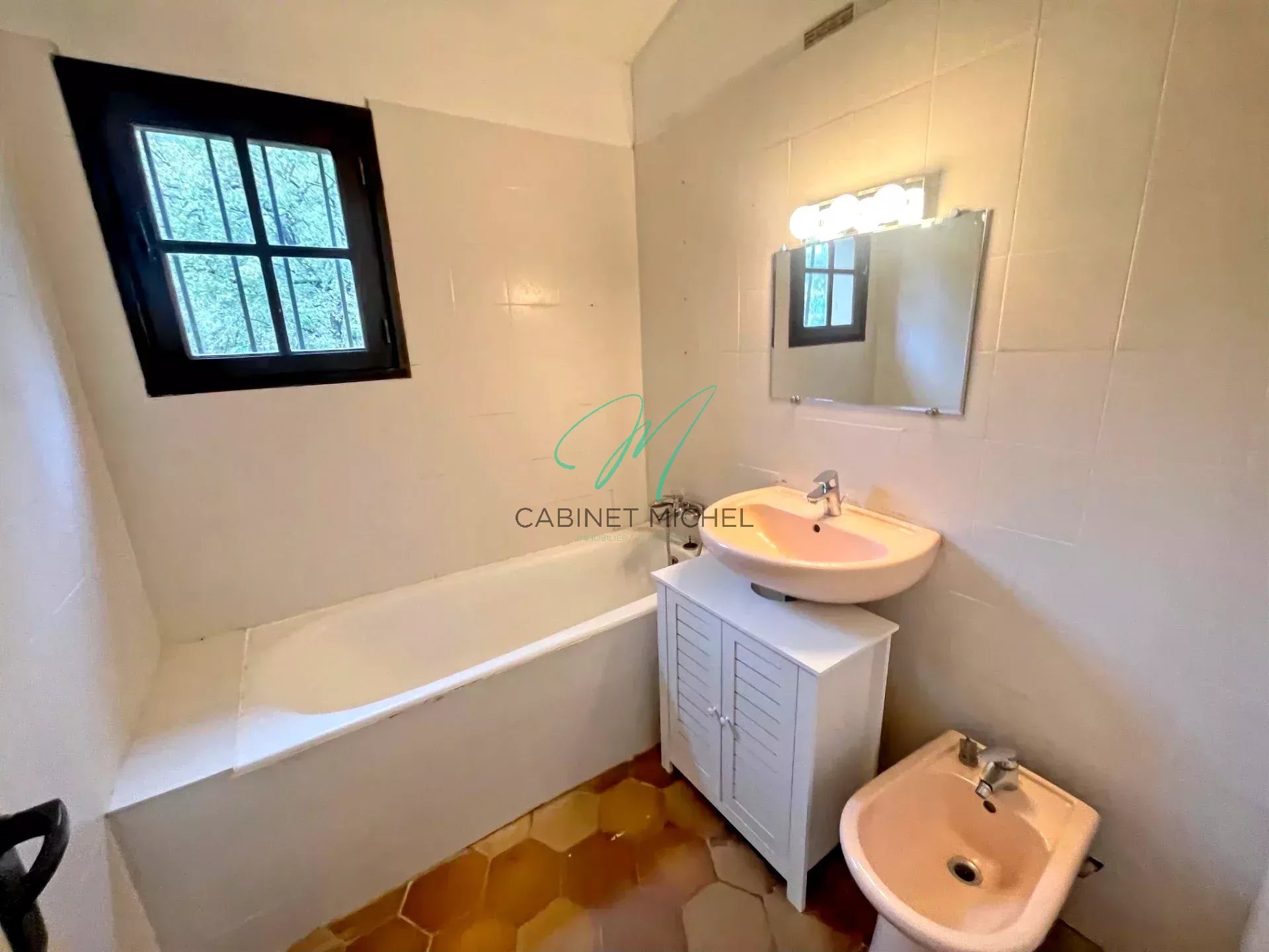 Située dans un quartier recherché, au calme, villa composée d'un séjour / salle à manger avec cheminée ouverte, une cuisine, 2 chambres dont une avec placard et une salle de douche avec wc.