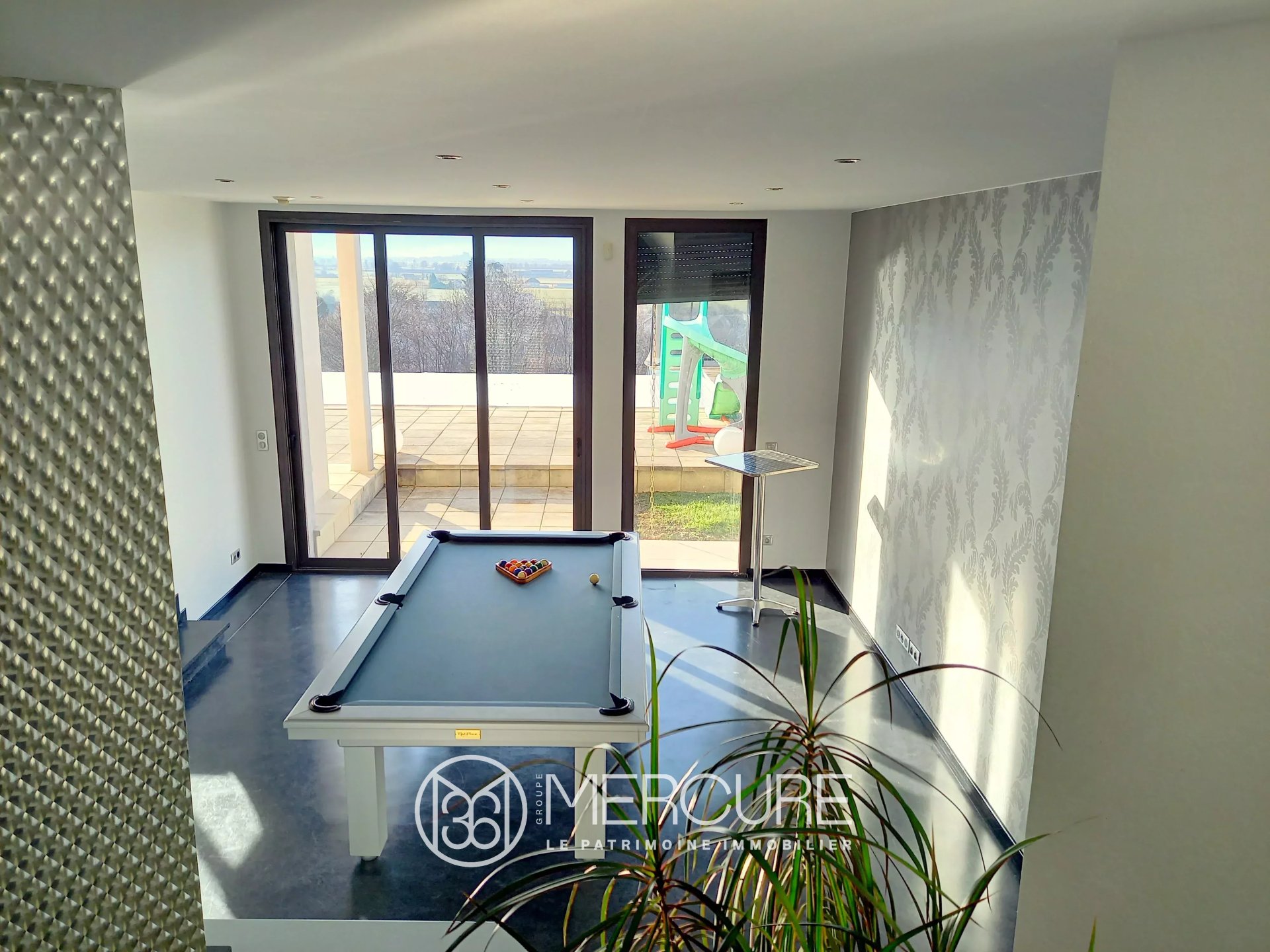 Dominant la plaine de la Bièvre, à seulement 15 min de Voiron, venez découvrir cette splendide villa d’architecte édifiée en 2011 sur un terrain de 1247 m². La demeure, exposée plein Sud, développe une surface habitable de 204 m² sur 2 niveaux, dans un style contemporain épuré.