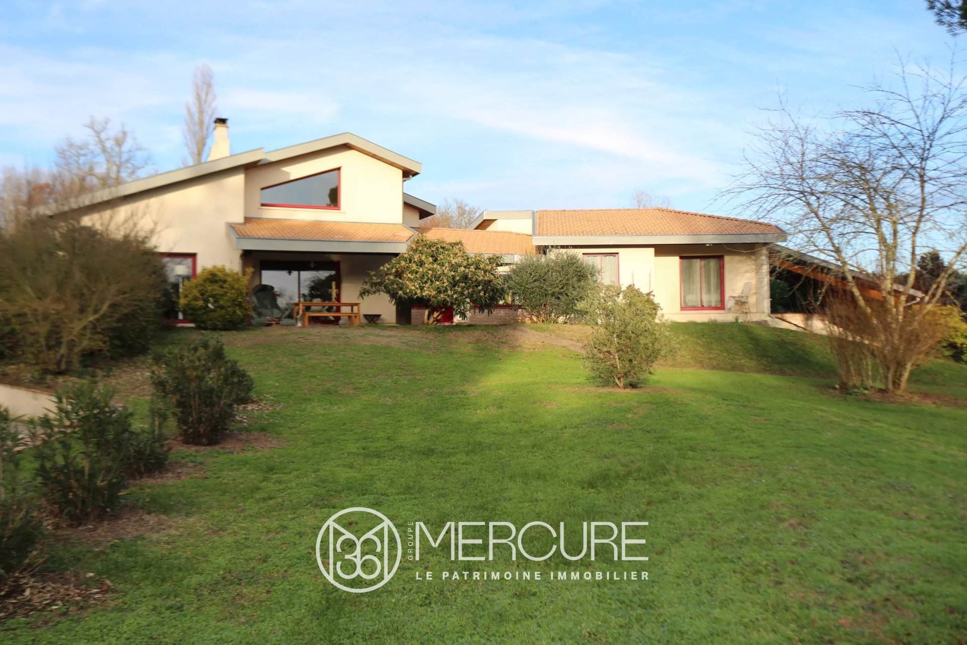 Maison d’architecte d’environ 235 m² comprenant 8 pièces principales dont 4 chambres et une suite parentale avec dressing et salon dans véranda privative, cuisine équipée, buanderie, 2 salles de douche, 1 salle de bains et sous-sol.