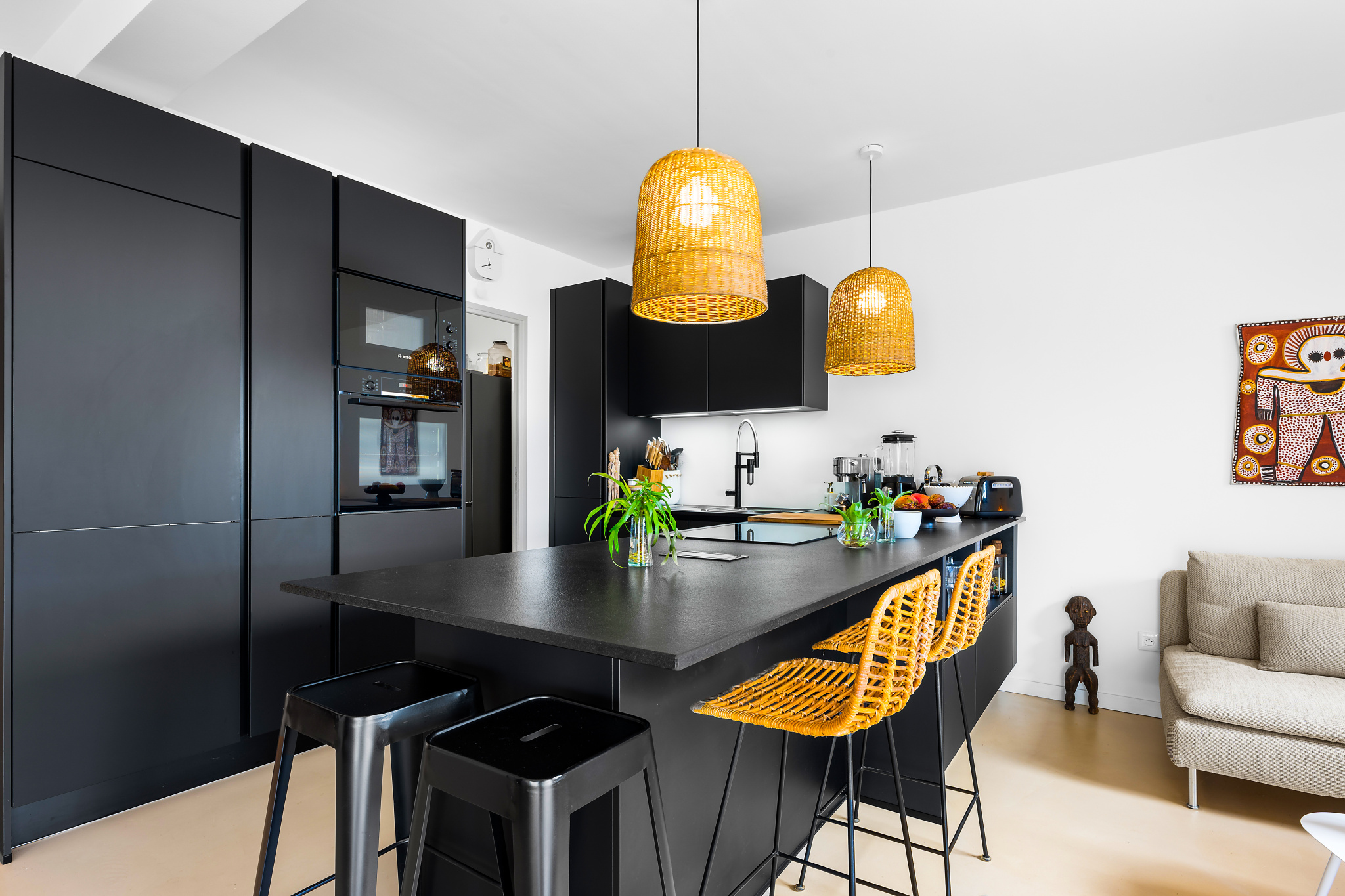 - Cuisine moderne entièrement équipée, ouverte sur un spacieux séjour lumineux avec vue mer