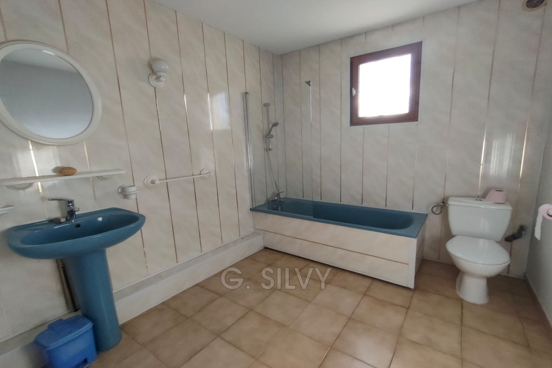 Au rez-de-chaussée, un hall d'entrée dessert un spacieux séjour de 37,72 m², lumineux et convivial, ouvert sur une cuisine à aménager. Un WC indépendant complète ce niveau.