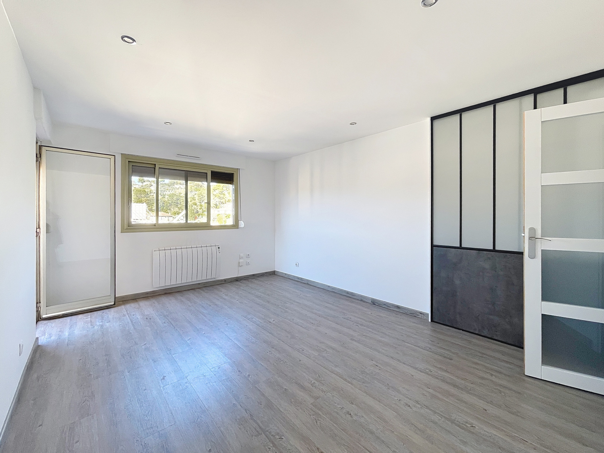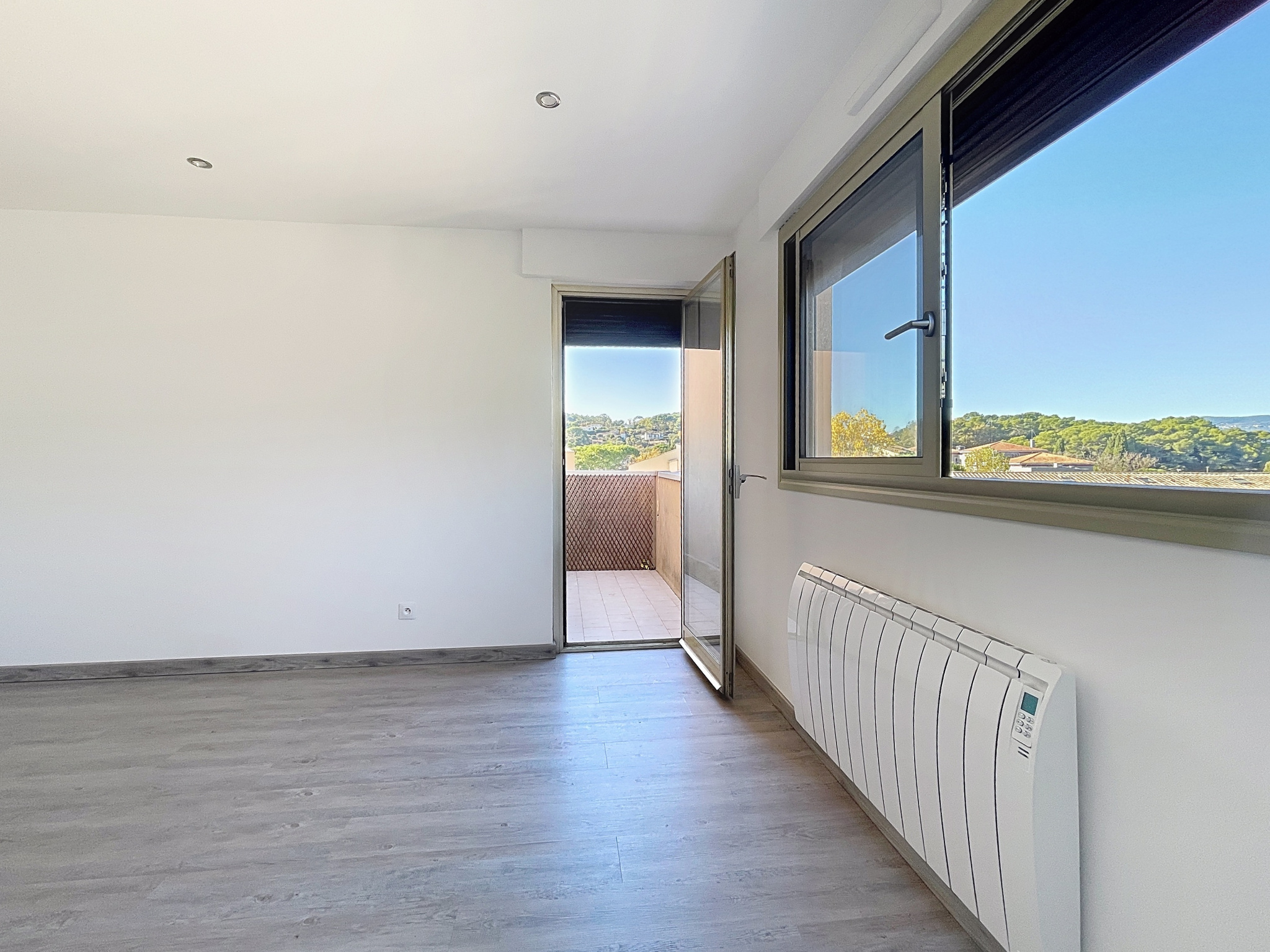 Dans une résidence sécurisée avec piscine, lumineux studio en dernier étage avec balcon, kitchenette, salle de douche/WC, placards et cave.