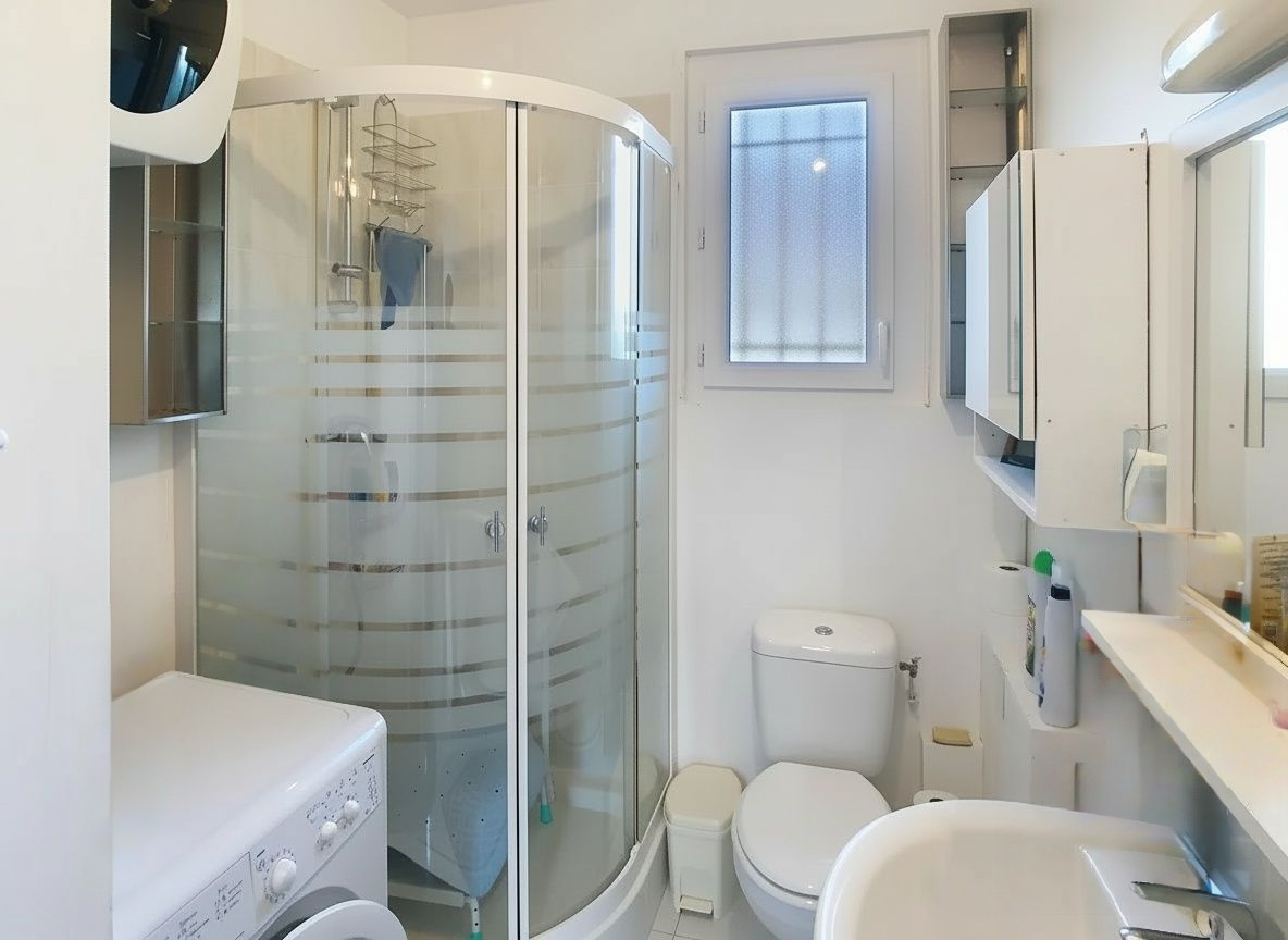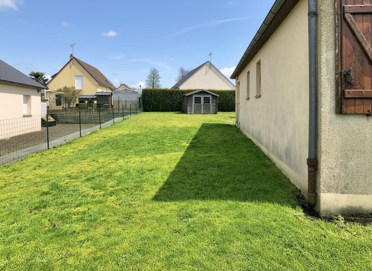 À l'extérieur, le terrain clos d'environ 450 m2 entoure la maison et propose une zone de stationnement située juste devant l'entrée. L'accès est simple et l'entretien du jardin peut être géré sans contrainte.