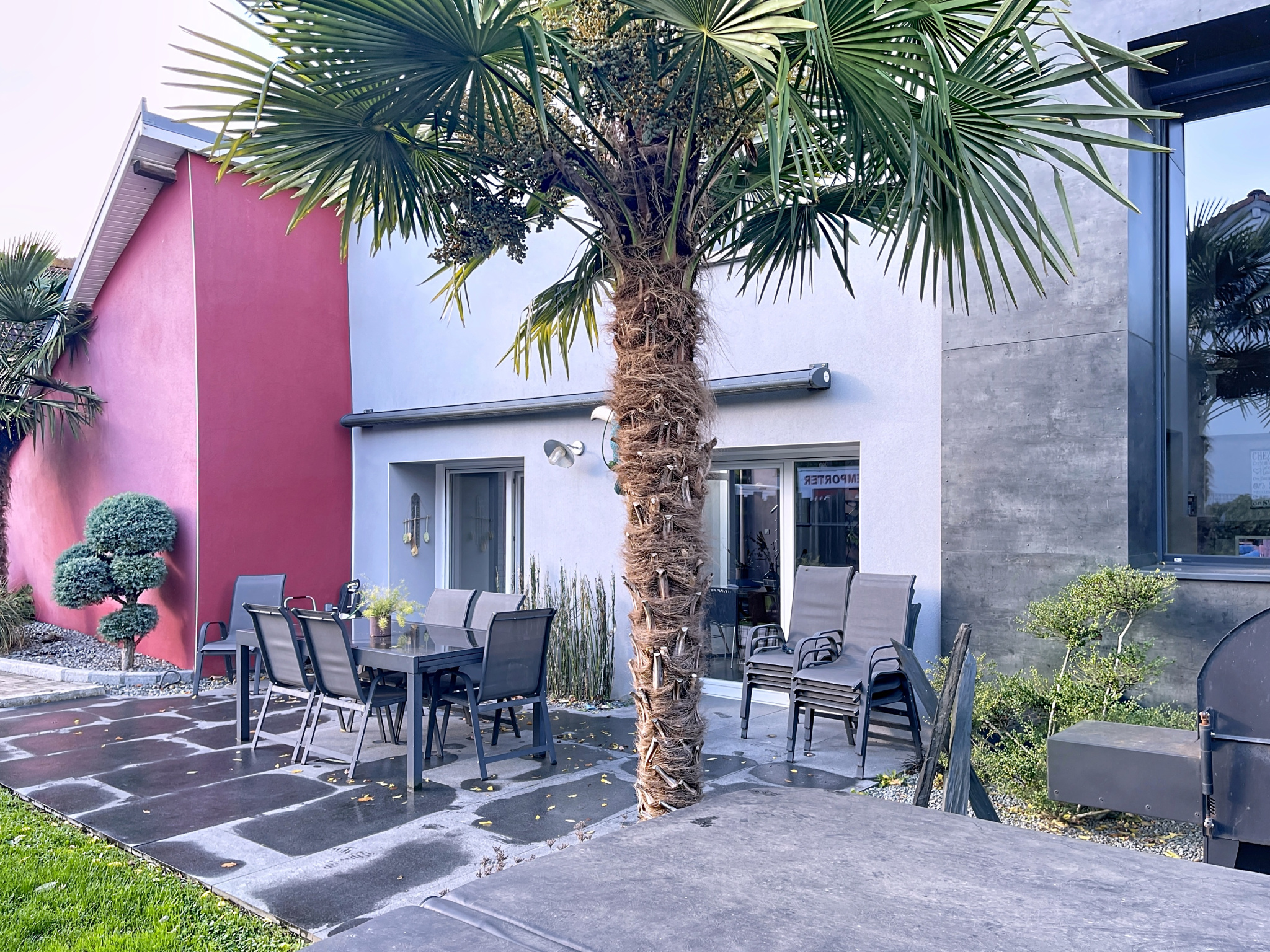 Le tout sur un terrain clos d'environ 700 m2 avec terrain de pétanque et store extérieur. Prestations de qualité : chauffage au sol, double vitrage PVC, volets roulants électriques, tout à l'égout.