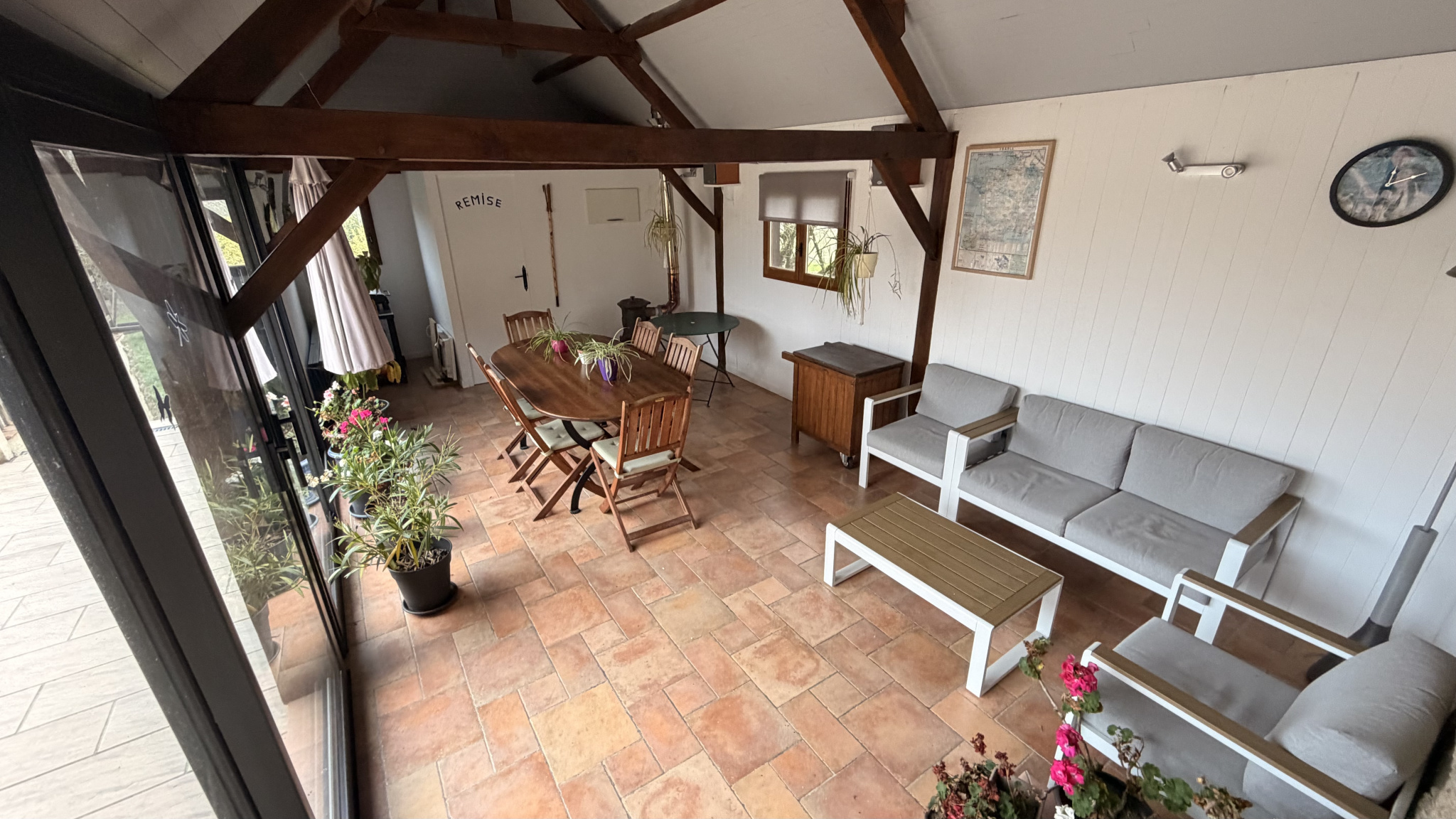 La maison principale offre une pièce de vie traversante et lumineuse, salon salle à manger-cuisine ouvert sur l'extérieur, une véranda donnant sur une grande terrasse face à la piscine, le tout au sein d'un parc arboré d'environ 6 500 m2. Un demi-niveau mène à l'étage composé de 3 chambres spacieuses, une salle de bain et une mezzanine propice à la détente.
