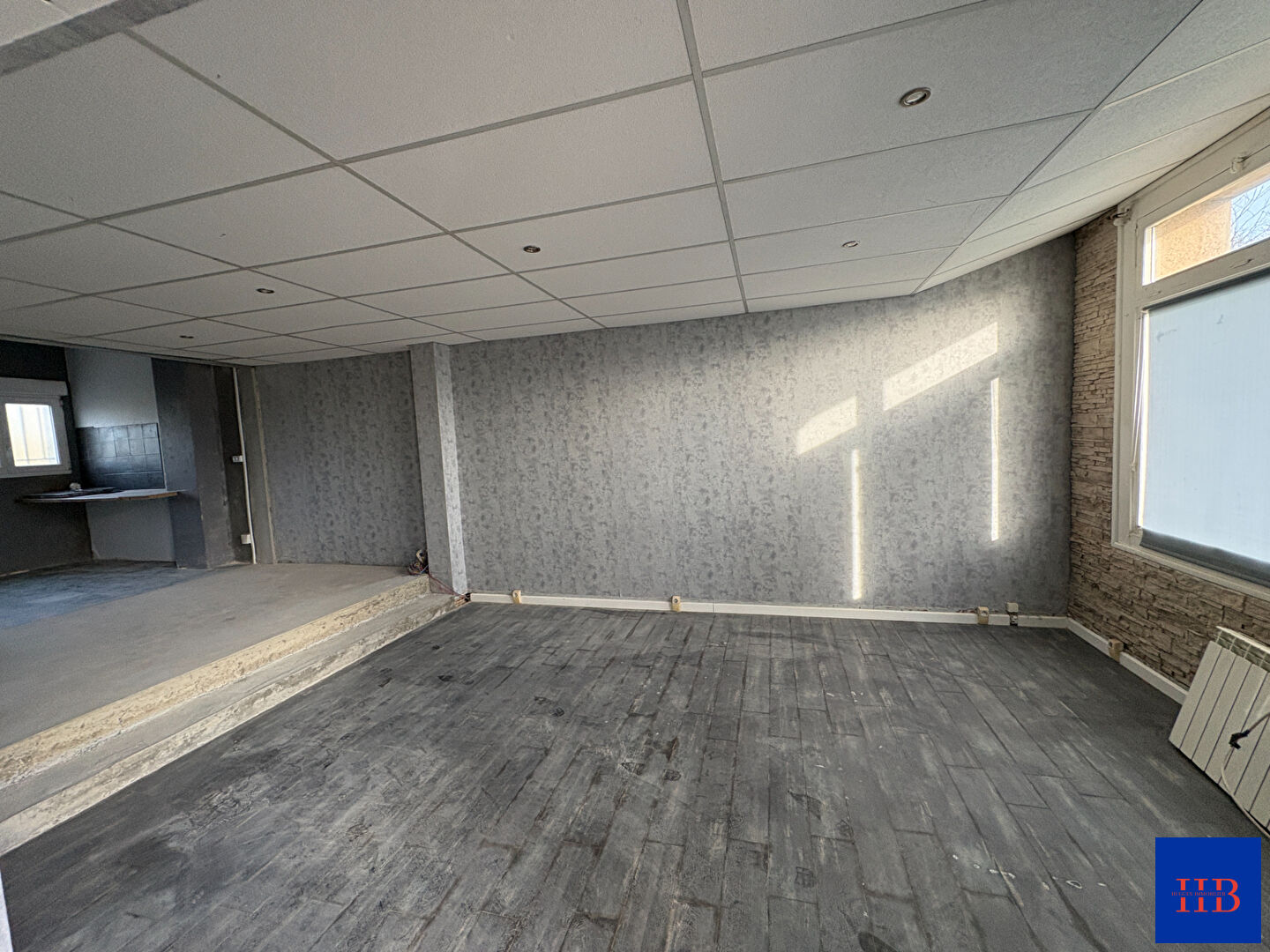 Maison d'environ 160m2 sur deux niveaux comprenant : buanderie, cuisine ouverte sur salle-salon, deux salles de bains, wc, bureau et 5 chambres.