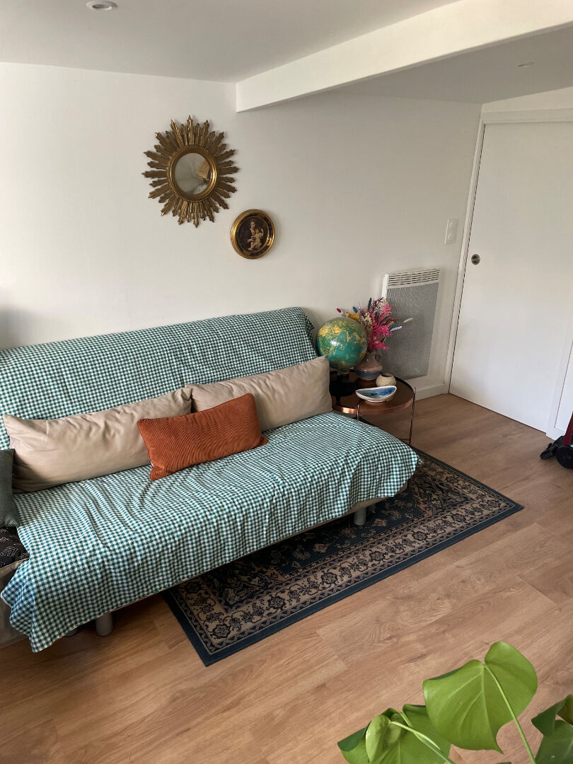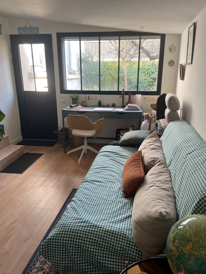 Au rez de chaussée surélevé d'un petit immeuble , dans une rue calme et aujourd 'hui en stationnement gratuit, Vous serez charmés dès l'entrée avec son sol en mosaïques anciennes et sa verrière qui permet une circulation douce et chaleureuse de la lumière, une spacieuse cuisine aménagée ouverte sur le séjour, offre un bel espace ou règne douceur de vie et convivialité . L' appartement offre également une chambre confortable , un atelier / garage en sus de plus de 14 m², un garage à vélo, une salle d'eau avec WC.