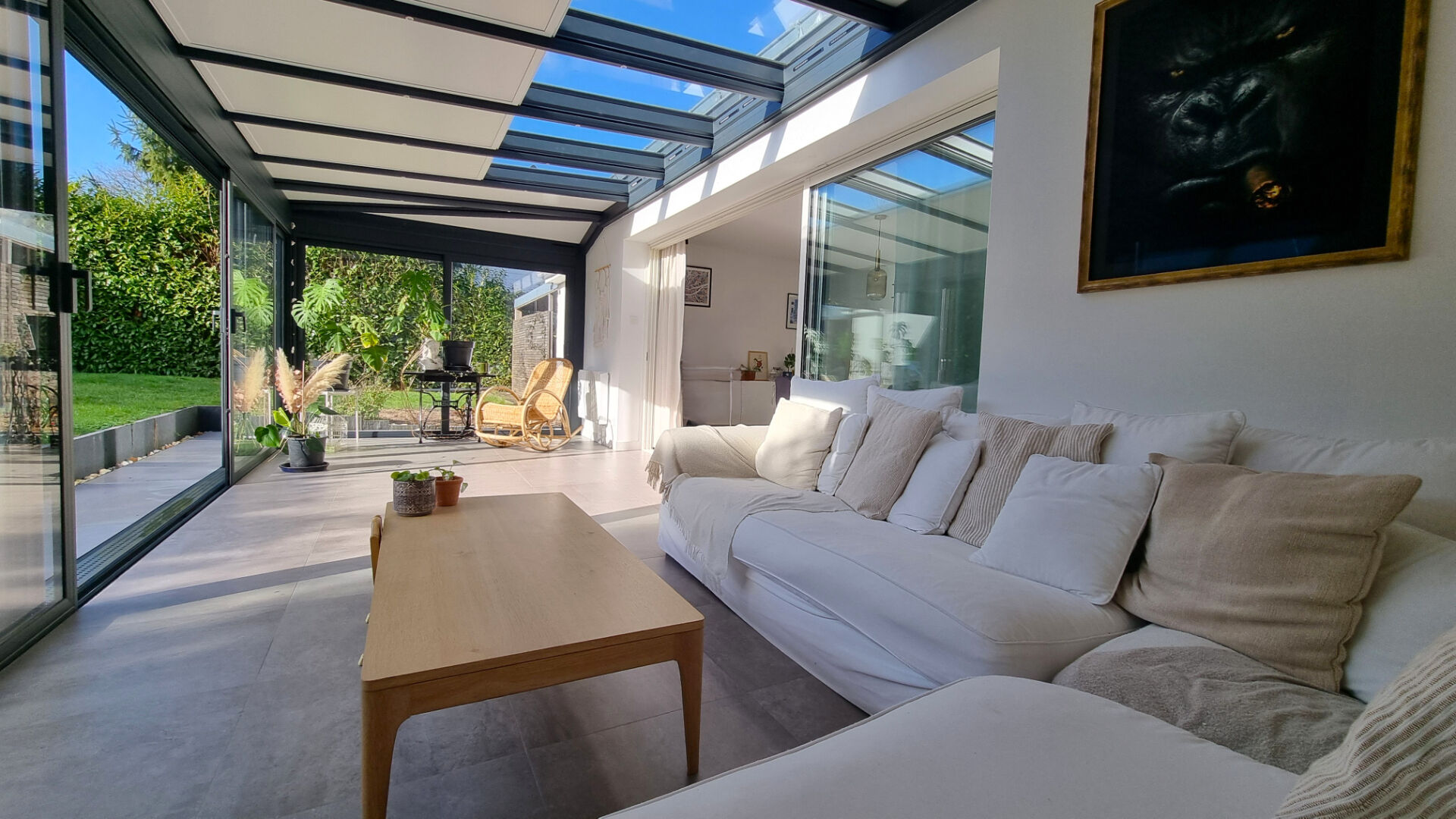 D'une surface habitable d'environ 140m², Elle se compose au rez-de-chaussée d'une entrée, d'une cuisine aménagée et équipée ouverte sur une belle pièce de vie exposée sud-ouest (conduit existant pour poêle), d'une superbe véranda vitrée lumineuse construite en 2020 amenant une réelle extension de la pièce de vie soit une surface de pièce principale de près de 65m² , d'une arrière-cuisine/lingerie chauffée permettant un beau stockage avec accès grenier de 10m², de WC indépendants, et d'une chambre avec salle d'eau attenante pratique pour recevoir famille et amis.