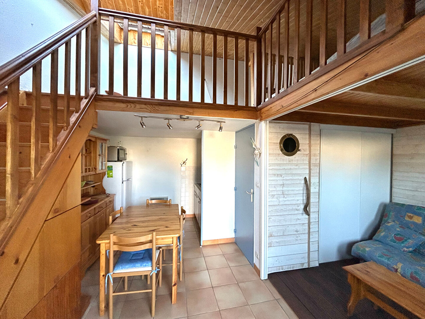 À l'étage, vous trouverez une belle mezzanine lumineuse.