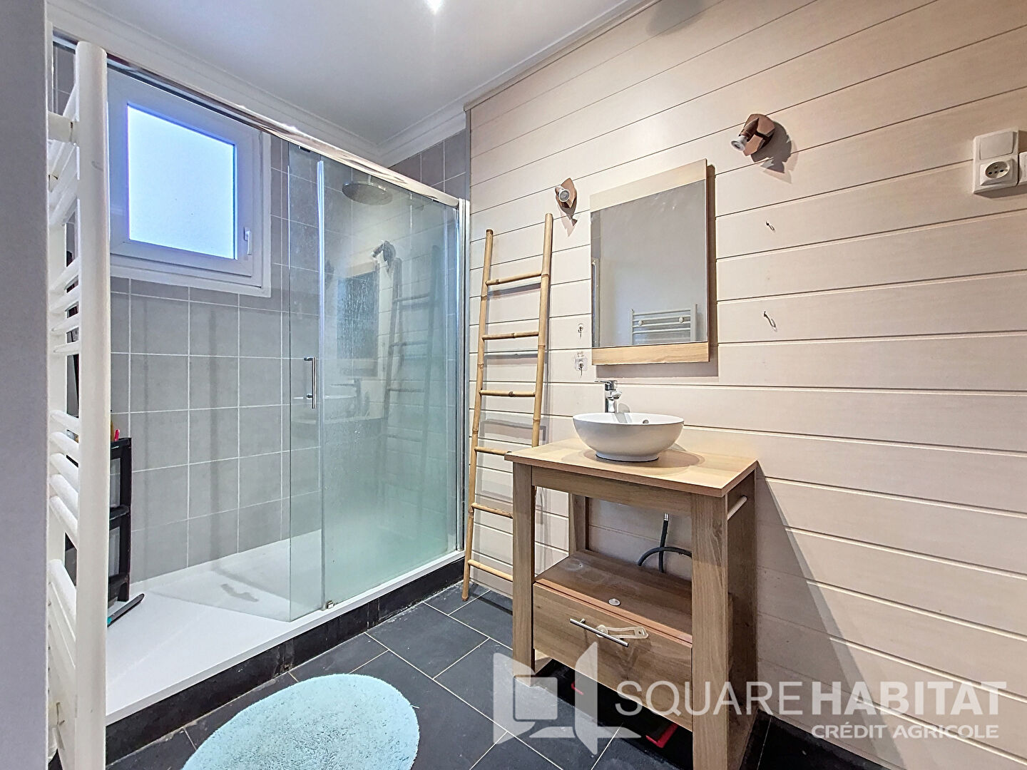 - A l'étage : palier/bureau, deux chambres avec rangements, salle d'eau avec fenêtre, toilettes séparés avec fenêtre.