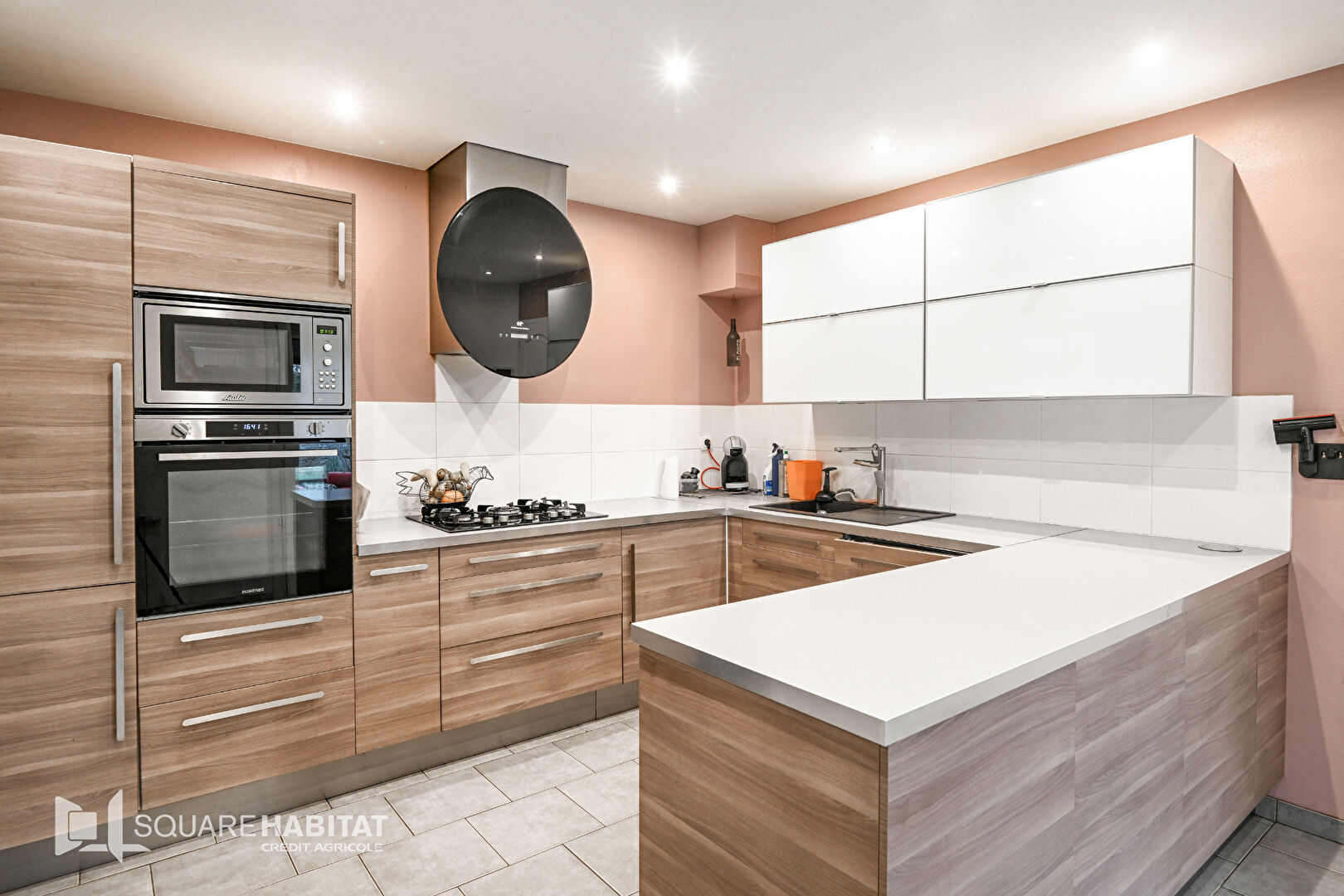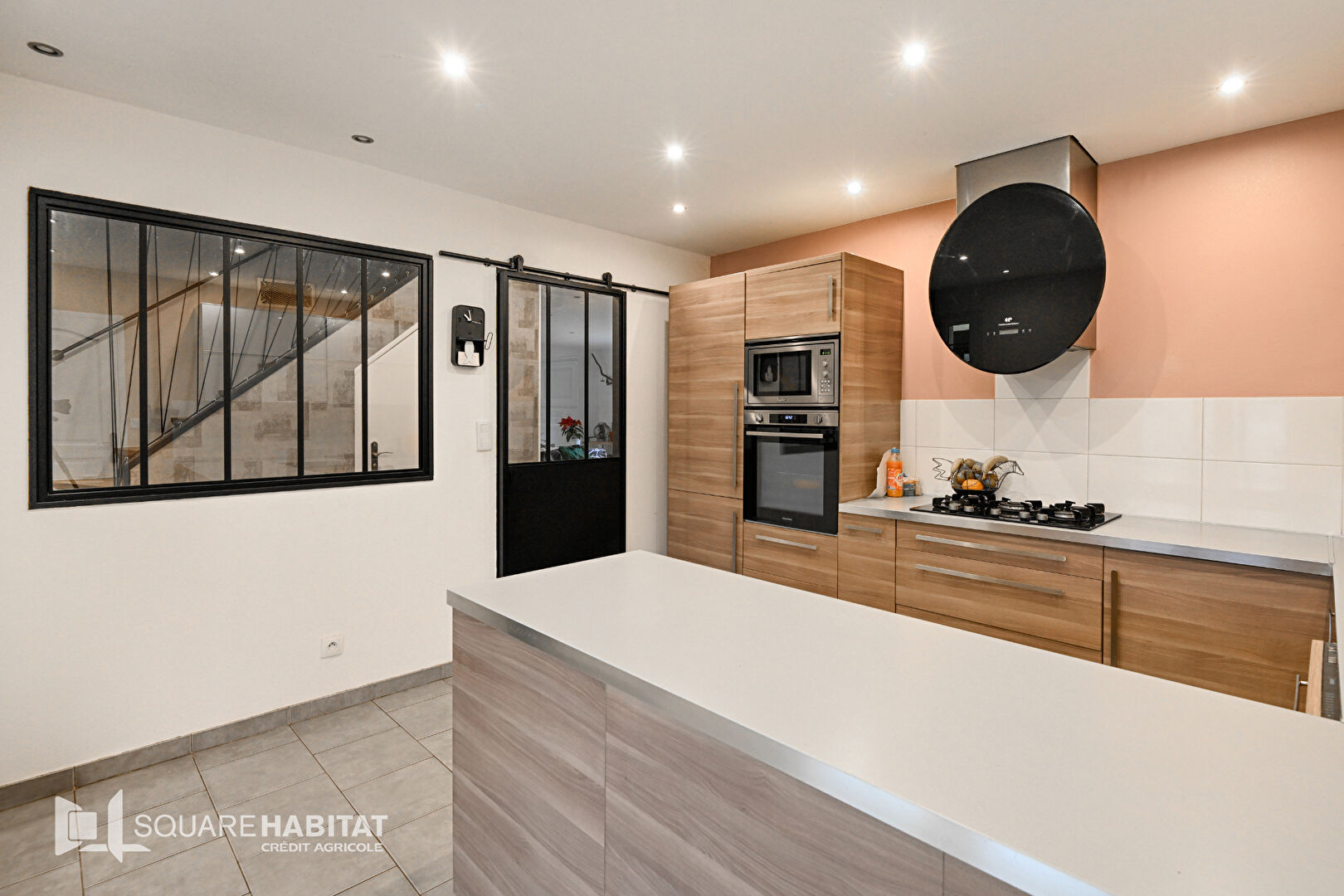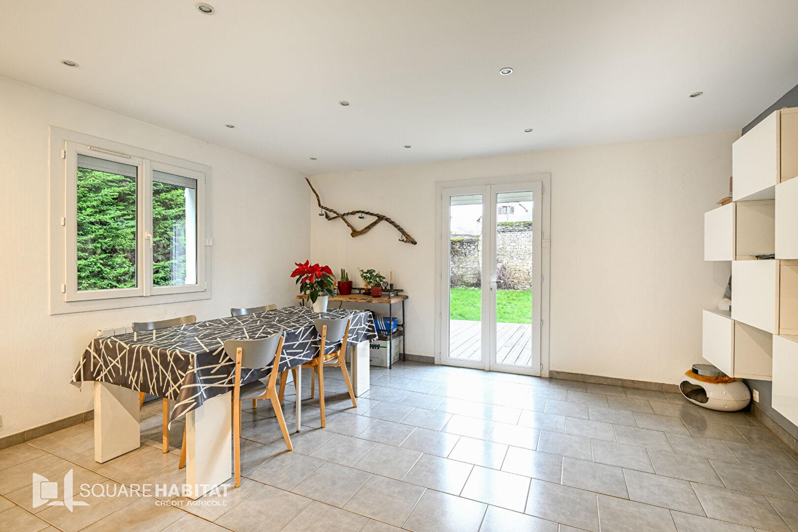 EXCLUSIVITE SQUARE HABITAT CAEN Au bord du canal, à 5 minutes du quartier du port et du château de CAEN, tous commerces et écoles à pied, bus de ville, tram, construite sur un terrain clos de hauts murs en pierre, une maison de construction traditionnelle de 1982 , récemment rénovée, 127 m² habitables, 7 pièces, cinq chambres dont une en rez-de-chaussée aves une grande salle de bains, salle d'eau à l'étage, un séjour salon avec cheminée insert donnant sur une véranda de 19 m², une cuisine indépendante aménagée et équipée, une grande buanderie, garage avec une pièce atelier et un grenier aménageable au dessus du garage, chauffage électrique avec des radiateurs récents, terrasse, préau pour véhicule, cabanon, Grande entrée avec portail motorisé. Idéal pour allier vie personnelle et une activité professionnelle ou artisanale à proximité de l'hyper centre de CAEN.