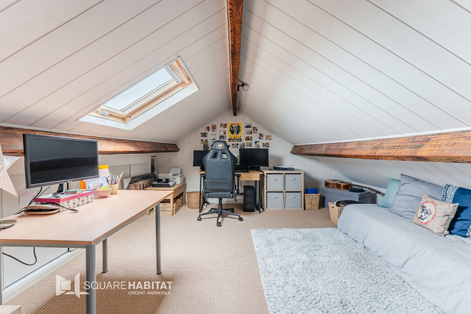 Deuxième étage : comble aménagé en chambre ou espace bureau.