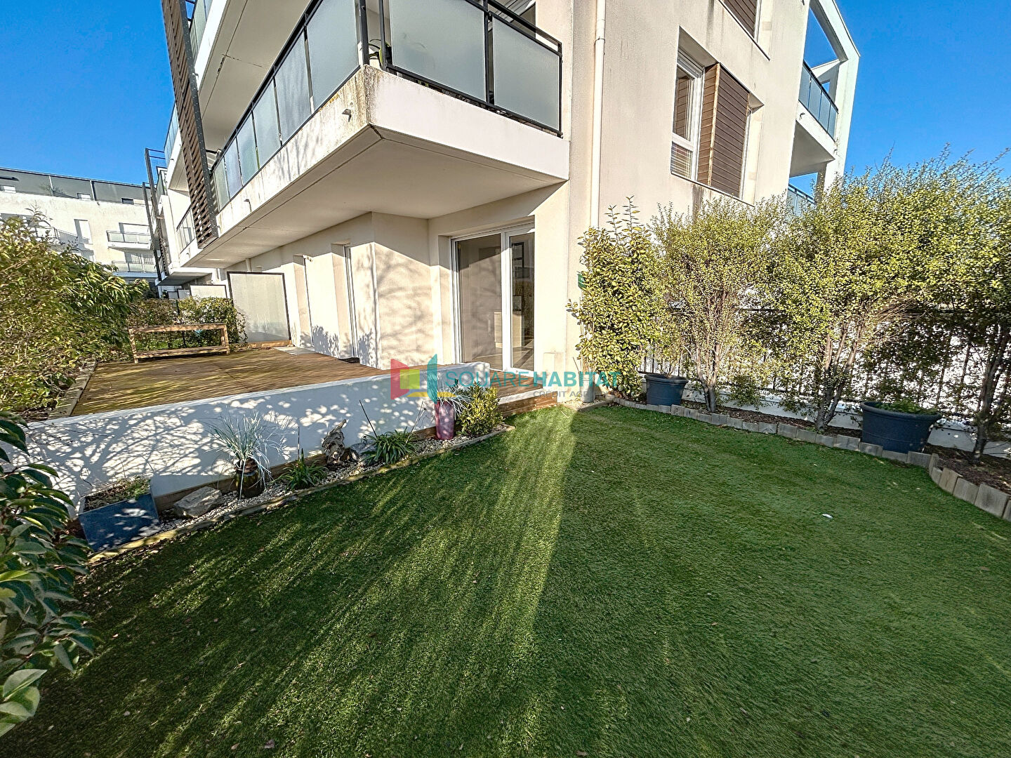 Au sein d'une copropriété de 2016, de bon standing et sécurisée charmant appartement de type 3 fonctionnel situé en rez-de-jardin. Il comprend une entrée avec placard, une pièce de vie avec cuisine moderne entièrement équipée avec son ilot central, dotée d'une belle clarté exposée SUD et EST ouvrant par deux accès sur un jardin et sa terrasse bois de 33 m²env. exposés EST, SUD et OUEST, deux chambres avec placard, une salle de d'eau entièrement carrelée avec rangements, un WC indépendant avec coin buanderie, un généreux jardin privatif de plus de 72m2 env, garant de votre tranquillité et